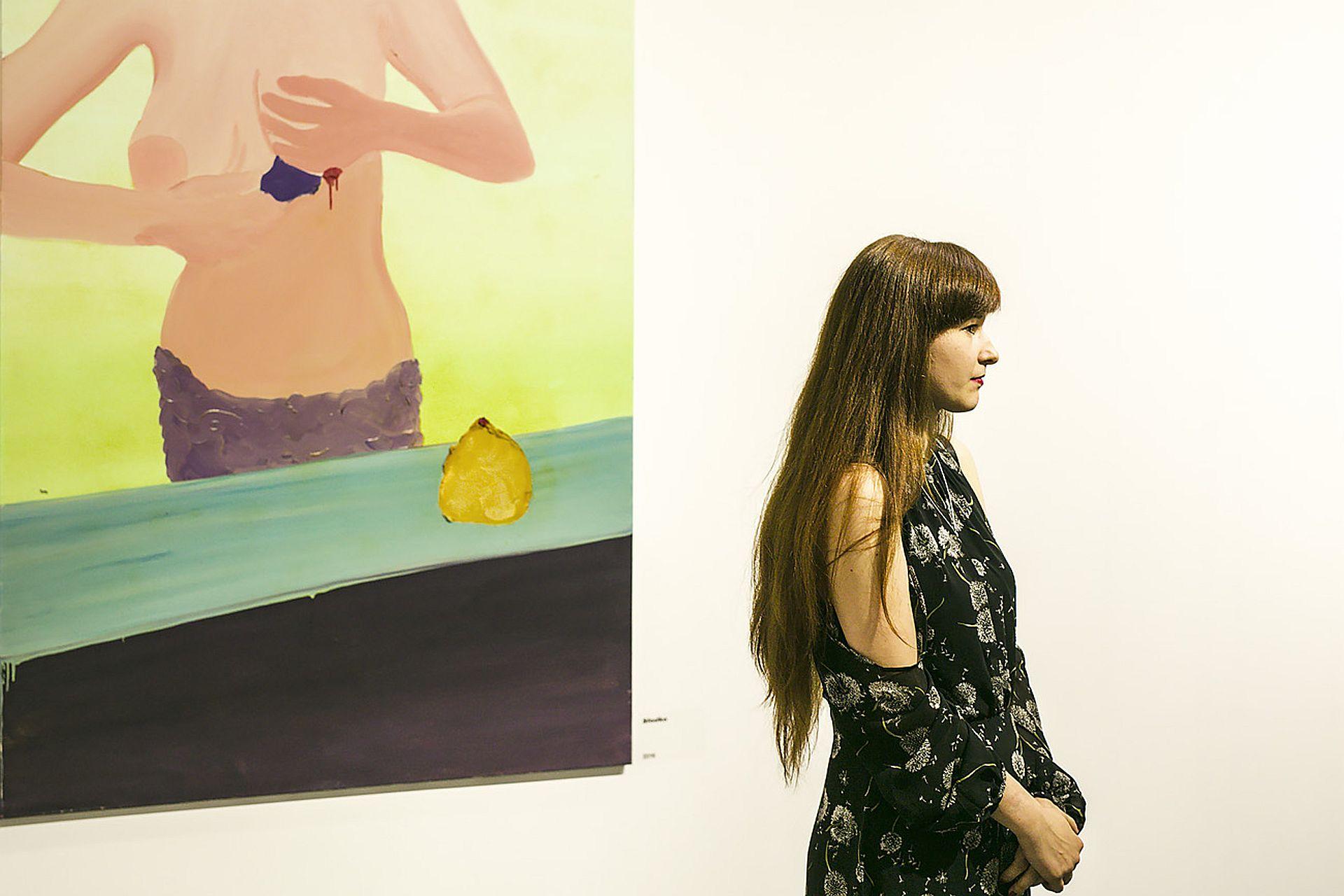 Two years after the success at Biennale, Galeria Bielska BWA organized a solo exhibition for Martyna Czech. He exhibition was the award of the Director of Galeria Bielska BWA, which is traditionally presented to the Grand Prix winner. Aptly named Venom, the 2017 exhibition was curated by Jakub Banasiak who said: “This year's graduate of the Academy of Fine Arts in Katowice exposes herself to a gruelling vivisection that we haven't seen in Polish painting for years. She paints fast and greedily, as if her works were life-size photographs of emotions, with no filter, like hasty notes jotted down on a cafe napkin or punched in on a mobile phone. The lurid titles: Tear, Rejection, Obsession, Temptation, make the statement even more emphatic without detracting from the general appeal. Czech’s works are overflowing with paint, and the configurations of individual elements are so peculiar that it takes time before we realize what we are actually looking at. And what we are looking at are, in fact, three overriding themes: animal slaughter, toxic relationships, and, possibly encapsulating the two, sensuality, carnal knowledge, disease. Paint is the artist’s yet another bodily fluid and the verisimilitude of her expression brings her work ever closer to abject art. Hers is affective art, a cardiogram of emotional highs and lows. She never gets carried away by an intellectual speculation or academic fad. If she sets her brush to the canvas, she does it as a consequence of personal experiences, impulses, reflexes, usually painful, traumatic, appalling ones. Her work is a reaction to foul behaviour of those close to her, to suffering - her own and other people’s, to misery and unhealed wounds. Martyna Czech paints with venom.”