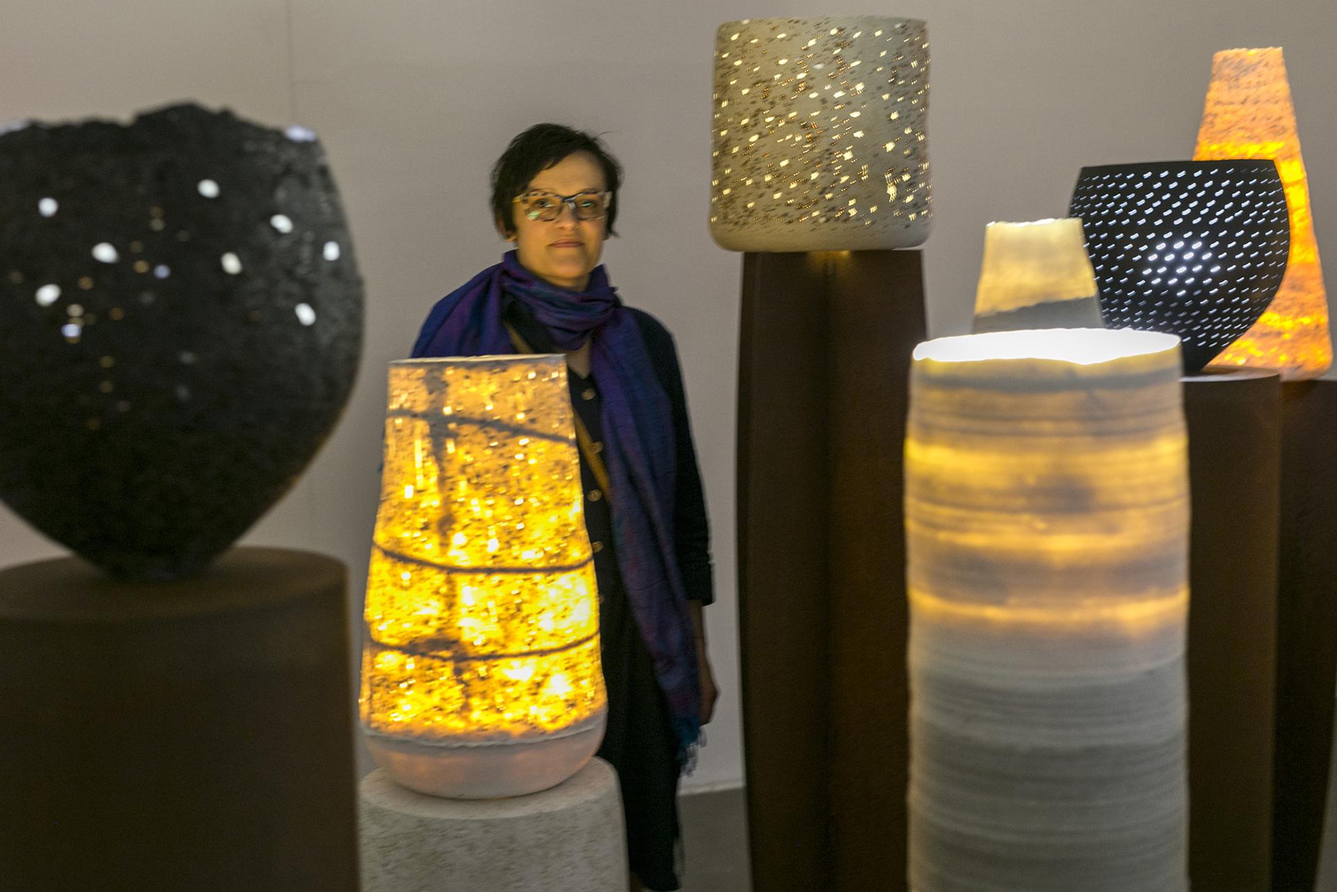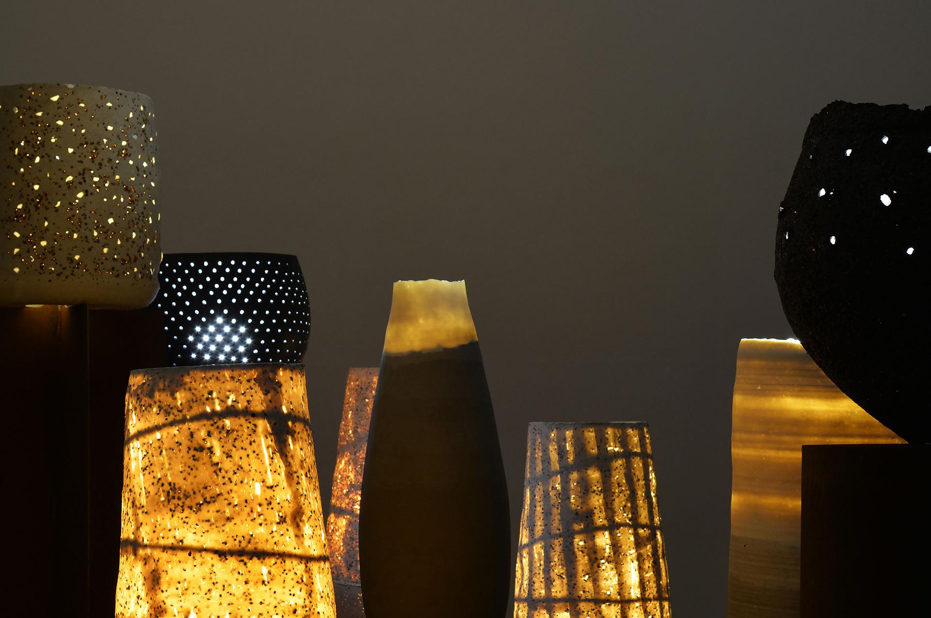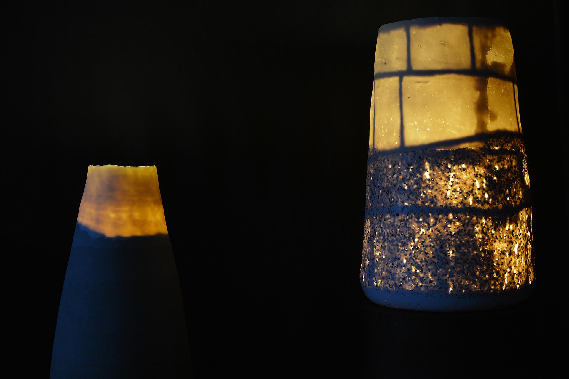 I've been observing the partial enclosure of light in ceramics, its delicate, reflective penetration through porcelain surfaces, so that both the elements – light and ceramic object – obtain an equal level of importance and complement each other while emphasising the messages carried by the work. ________________________________________________________________________________