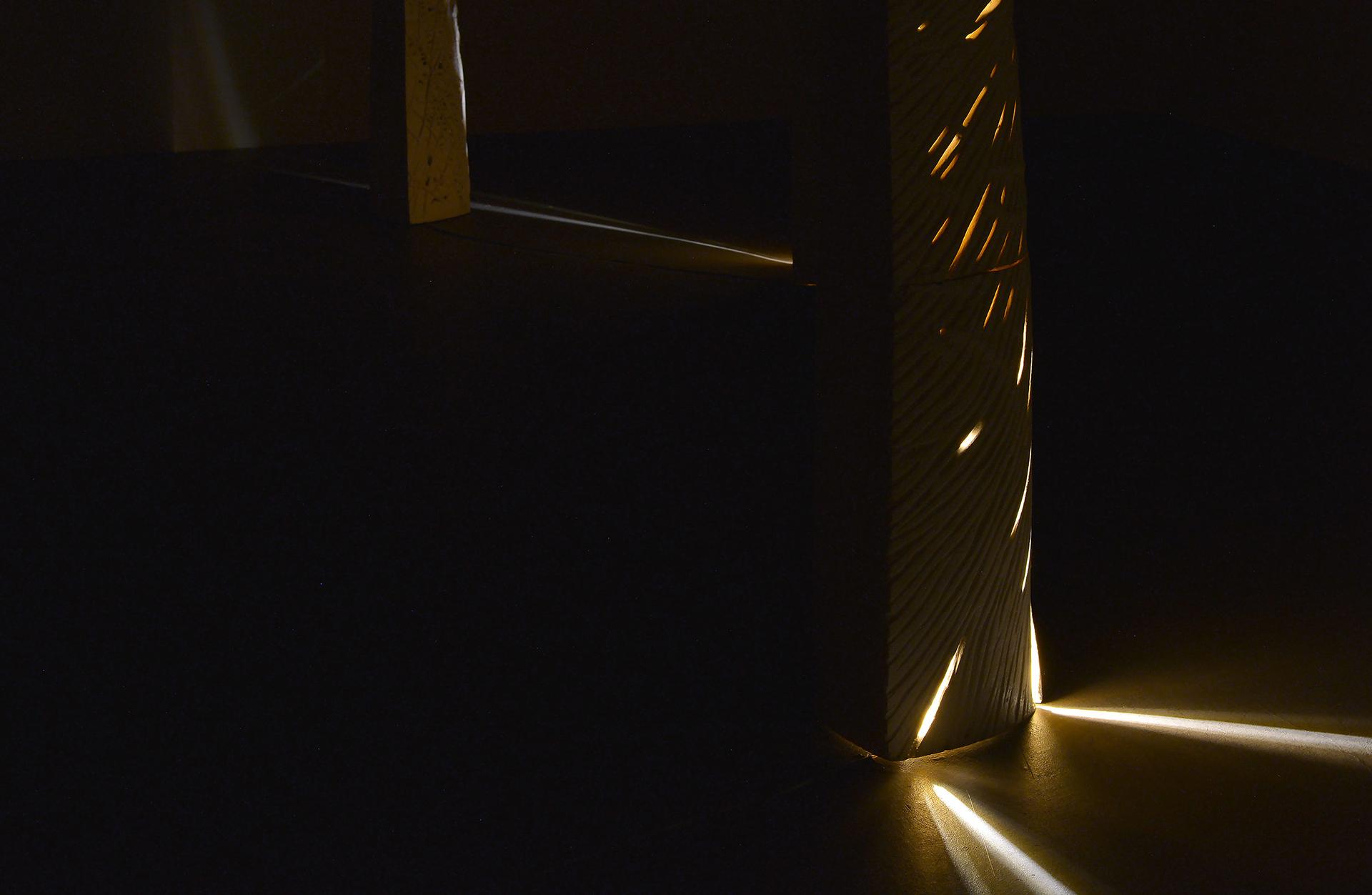 From the very beginning, I’ve wanted to combine the themes of light and forest. I love to observe sunlight penetrating through the canopy, especially when the sun is low, in the morning or evening. But I had a problem finding the right form, and although I live very close to a forest, the answer came in Spanish Valencia, where I came across some amazing bottle-shaped during a morning jog in a park which was created in an old riverbed. My first thought was: “ceramic trees”. As if they'd been waiting for my discovery.