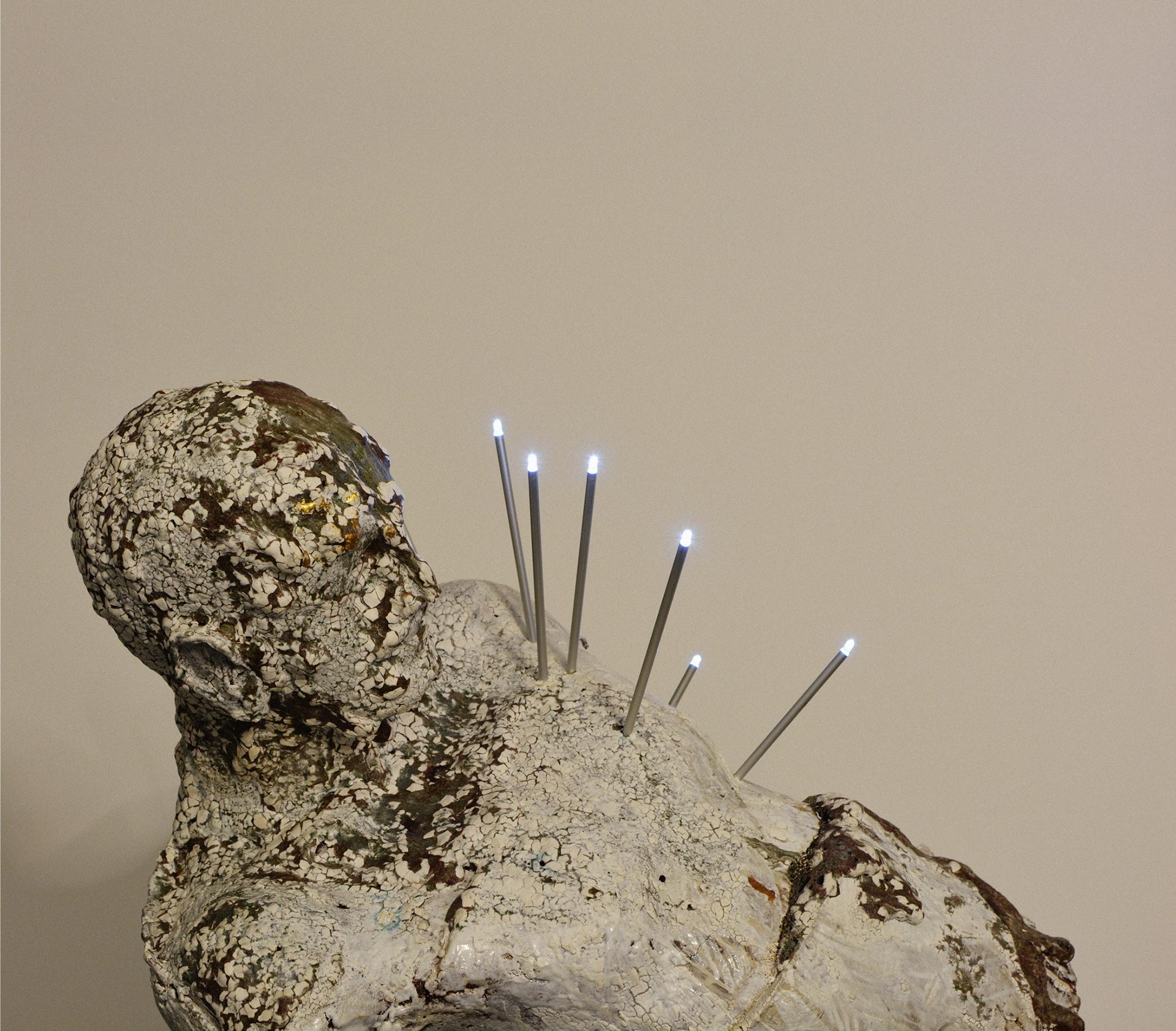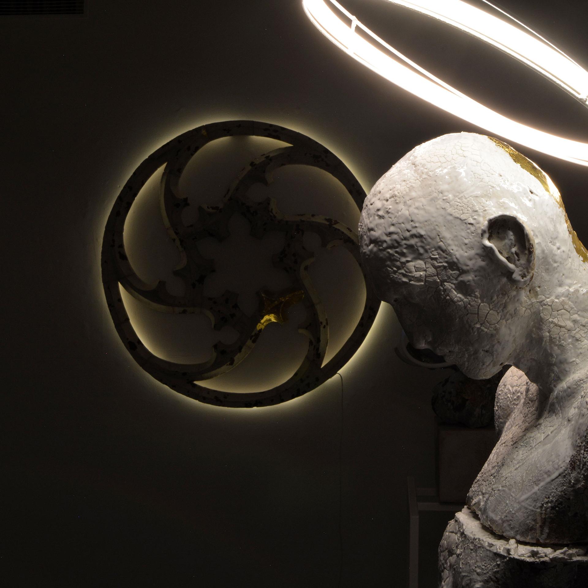 I have long been interested in combining contrasting materials such as clay and light. It’s very much like a combination of spirit and matter. I espouse the idea that everything is energy. We, i.e. our body and our spirit, are also a form of energy. That is why I’ve created works in which I want these two aspects of our existence: corporeality (clay made to resemble human skin) and spirituality (energy, light) to connect in such a way that the border between them appears unclear, not fully legible.