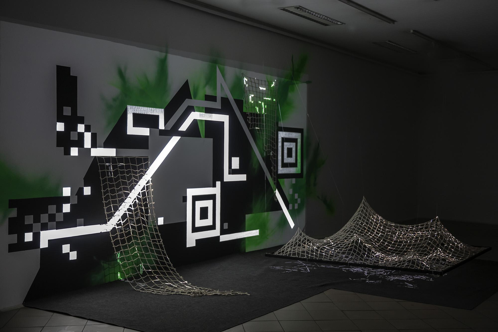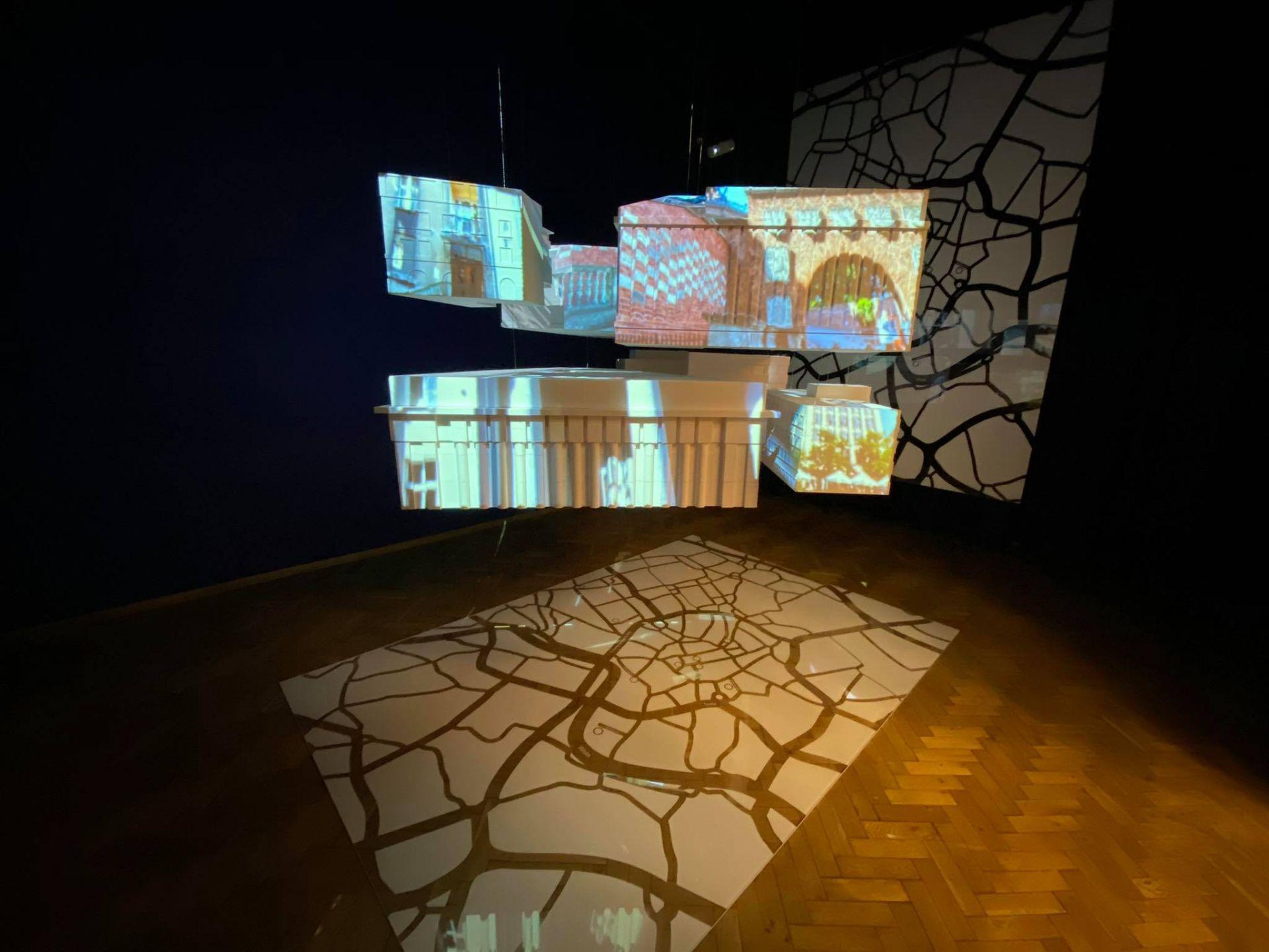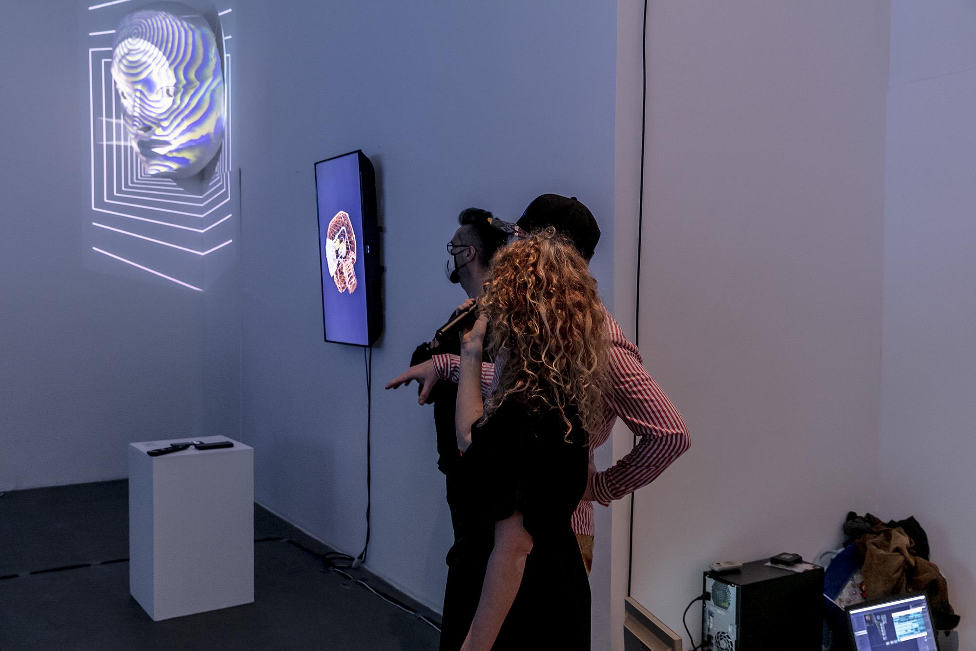 Video mapping in the gallery. The artists expose a symbiosis between the real and virtual worlds. Thanks to digital images, viewers will be presented with an alternative vision of the world, as they find themselves surrounded by an augmented reality.