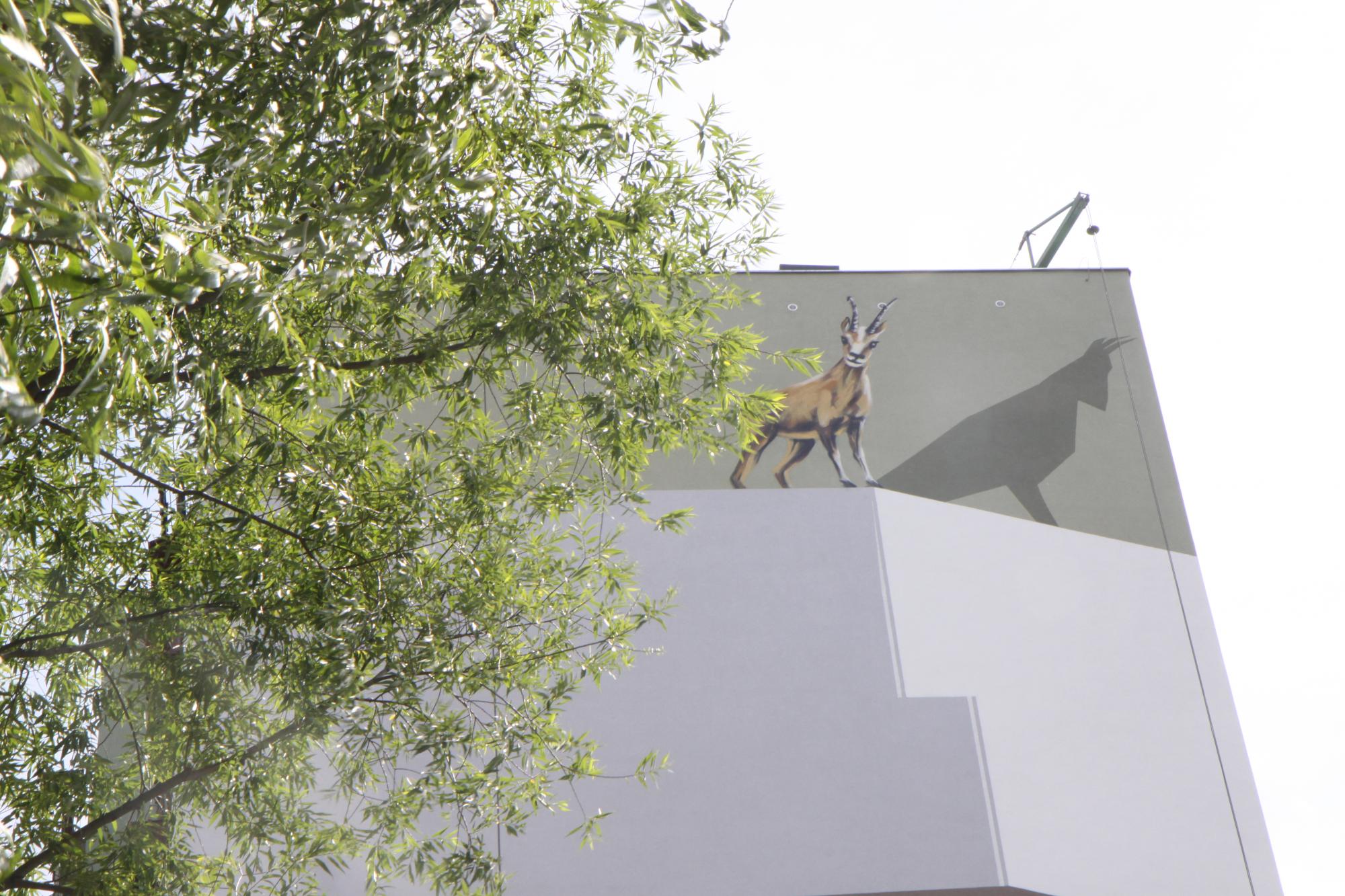Artystka zaproponowała iluzjonistyczny, a zarazem minimalistyczny mural z kozicą stojącą nad oblodzonym urwiskiem skalnym. Tatrzańska kozica spoziera na bielszczan, przechodniów i ruchliwą przelotową aleję Andersa ze szczytu wysokiej ściany.