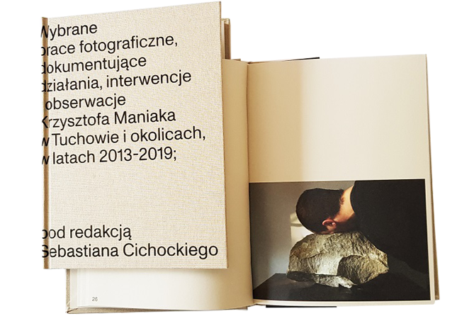 Polsko-angielski katalog „Wybrane prace fotograficzne, dokumentujące działania, interwencje i obserwacje Krzysztofa Maniaka w Tuchowie i okolicach, w latach 2013–2019” pod redakcją Sebastiana Cichockiego