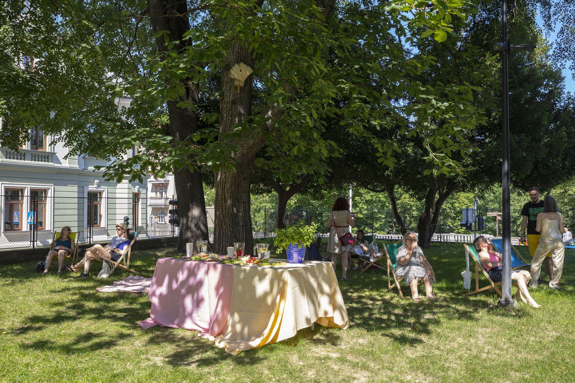 W strefie wytchnienia w ogrodzie Willi Sixta, stworzonej przez Galerię Bielską BWA pod hasłem „Gościnność”, przez cały czas będą dostępne leżaki, koce i woda różana – zachęcamy do przynoszenia własnych przysmaków, gier i spędzania czasu wspólnie w różanym plenerze.