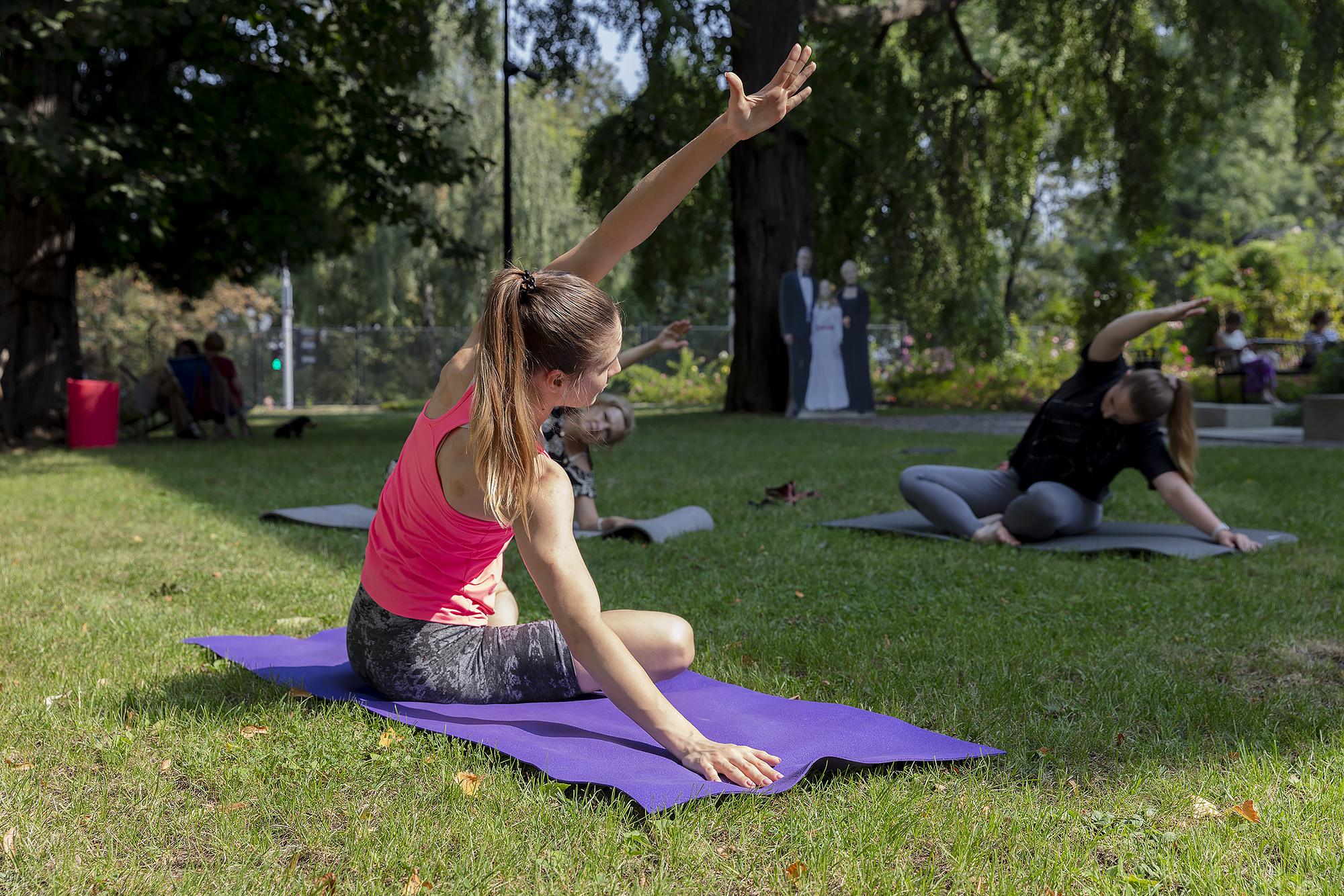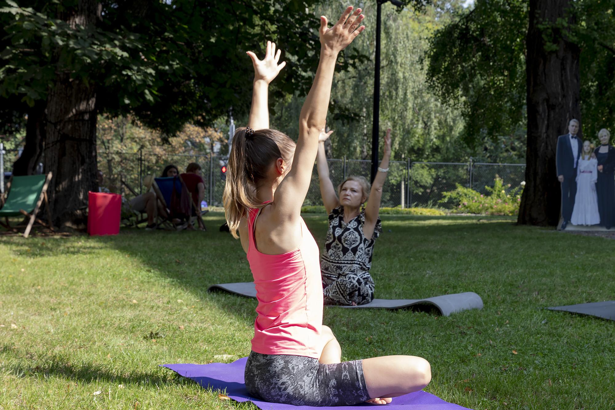 Zajęcia z jogi Katarzyny Raczkiewicz. Zapraszamy każdego, kto ma ochotę na relaks i rozciąganie mięśni ciała na trawie w cieniu drzew. Zachęcamy do udziału, niezależnie od stopnia zaawansowania. W miarę możliwości prosimy o przyniesienie mat do ćwiczeń; kto ich nie posiada, może liczyć na wypożyczenia karimaty.