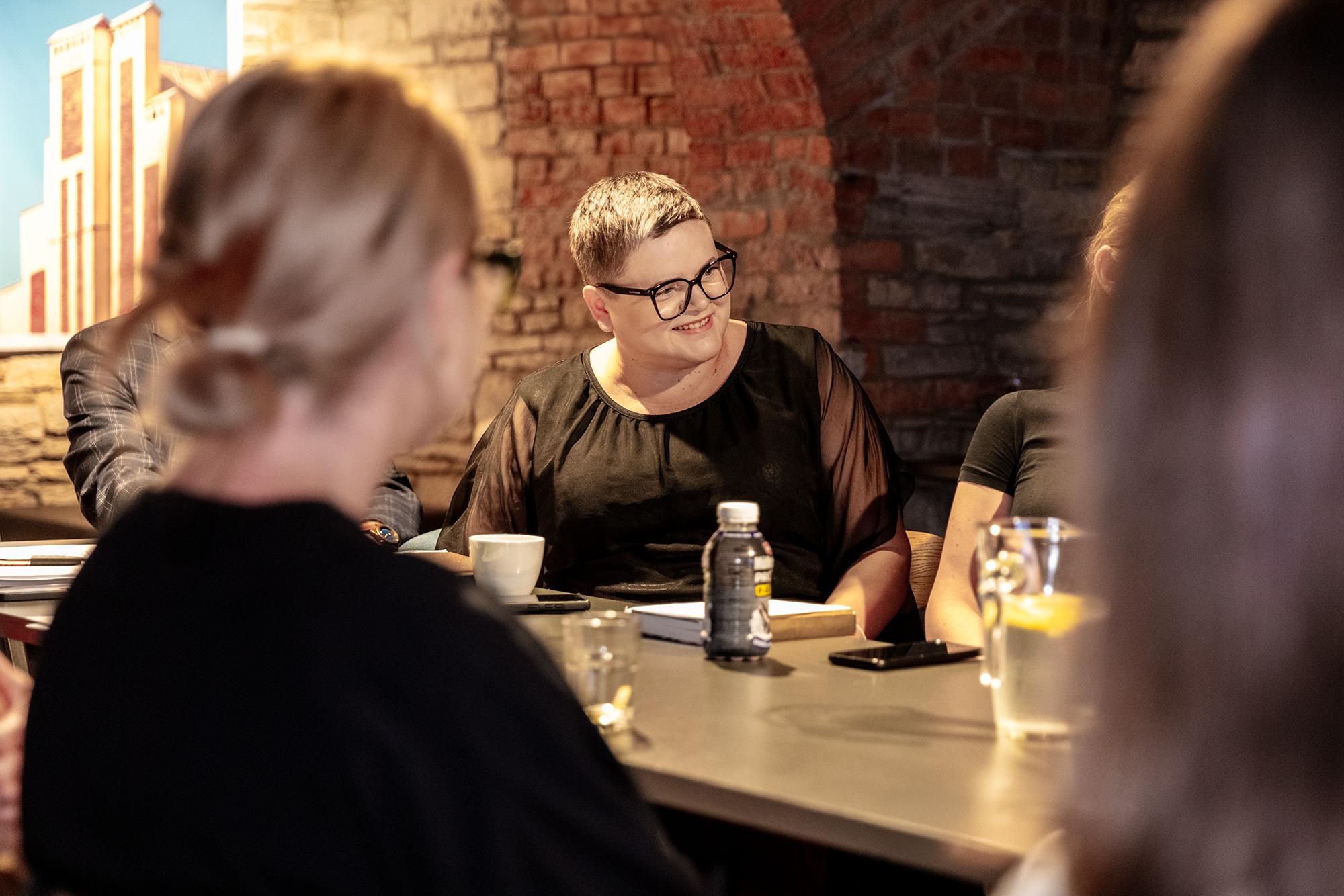 Uczestnicy opisali swoje pozytywne doświadczenia i sukcesy w pracy z osobami z niepełnosprawnościami ruchowymi i umysłowymi, wskazali również największe wyzwania, z jakimi się mierzą. Instytucje opowiedziały o rozwiązaniach technologicznych (Książnica Beskidzka oraz budynki Urzędu Miejskiego wyposażone są w pętle indukcyjne) oraz sposobach udostępniania treści wydarzeń poprzez makiety scenografii przygotowane do dotykania, drukowanie biletów z informacjami opisanymi w alfabecie Braille’a (Teatr Polski). W Galerii Bielskiej BWA działania kulturalne dla osób z niepełnosprawnościami organizowane są od lat 90. Edukatorki galerii prowadzą warsztaty dla osób niedowidzących i niedosłyszących, z chorobami neurodegeneracyjnymi oraz dla osób w spektrum autyzmu. Galeria ułatwia też dostęp do wystaw i wydarzeń opiekunom niemowlaków oraz osobom starszym.