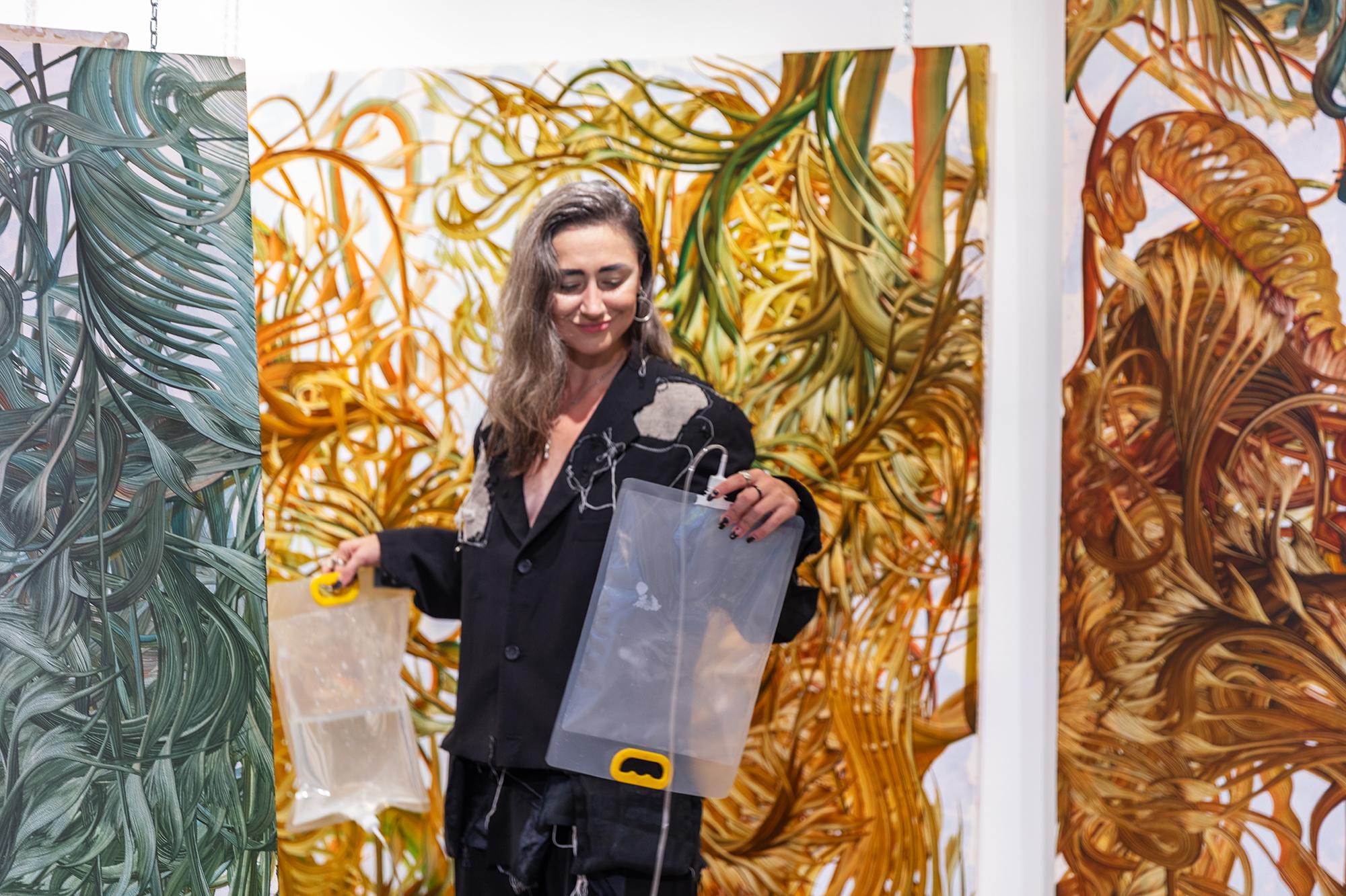 Z kolei wystawa „Coś jest w wodzie” / “Something’s in The Water” przedstawia najnowsze obrazy warszawskiej artystki Edyty Hul – laureatki Grand Prix 46. Biennale Malarstwa Bielska Jesień 2023 (Grand Prix ex aequo z Karoliną Jarzębak i Adamem Kozickim). Organizacja wystawy to Nagroda Dyrektora Galerii Bielskiej BWA przyznawana laureatom i laureatkom Grand Prix Bielskiej Jesieni. Zobaczymy intrygujące malarstwo artystki i jej wyobrażenia podwodnego świata – z morfującymi formami, z przeczuciem zagrożeń i pożądań czyhających pod powierzchnią na mulistym dnie.