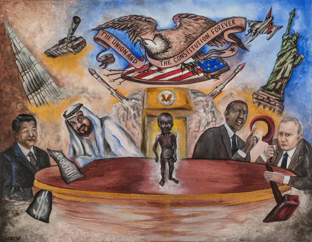 Jolanta Stachyra, Afryka a świat. Dobro? Byt? 1, 2015, akryl na płótnie, 70 x 90 cm