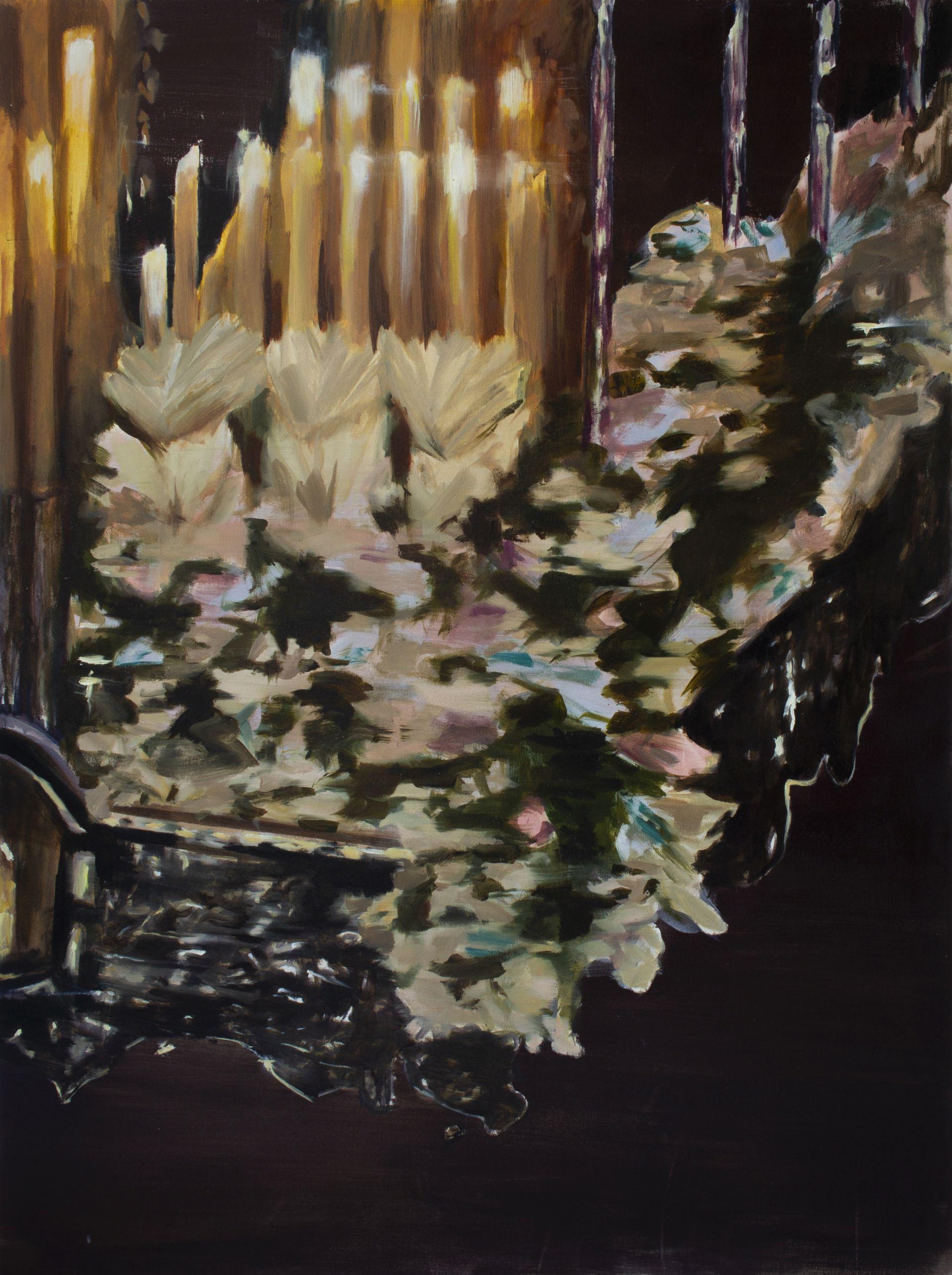 Obrazom Edyty Olszewskiej przewodzi światło. Jako główny bohater tej wystawy, wyznacza granicę pomiędzy tym, co święte (sacrum) a tym, co grzeszne (profanum). Światło wydobywające się z tabernakulum świeci w niemal identyczny sposób co cekiny na sukniach, elementy zdobnicze, szlachetne kruszce, płomień świecy. To opowieść o świętej iskrze, o zapalonym papierosie, o stroboskopach rozmywających pijaną wizję. To opowieść o świetle i jego opozycji – mroku, o wielu możliwych interpretacjach.