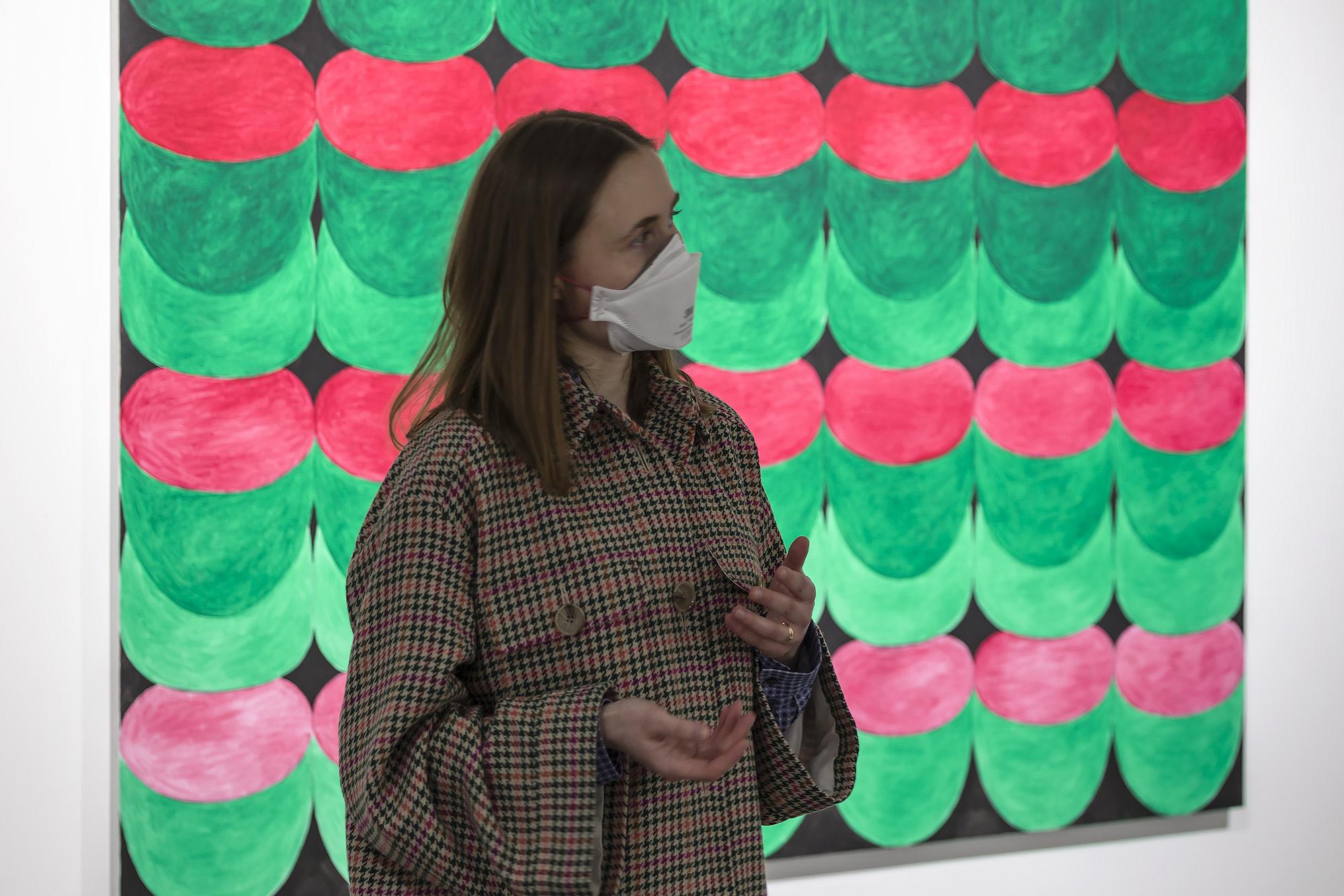 „Format jest ważny – widz musi się cieleśnie skonfrontować z obrazem, stawić mu czoła" – pisze Karol Sienkiewicz w katalogu wystawy o malarskich grach artystki, o obrazach, w których punktem wyjścia jest ciało.