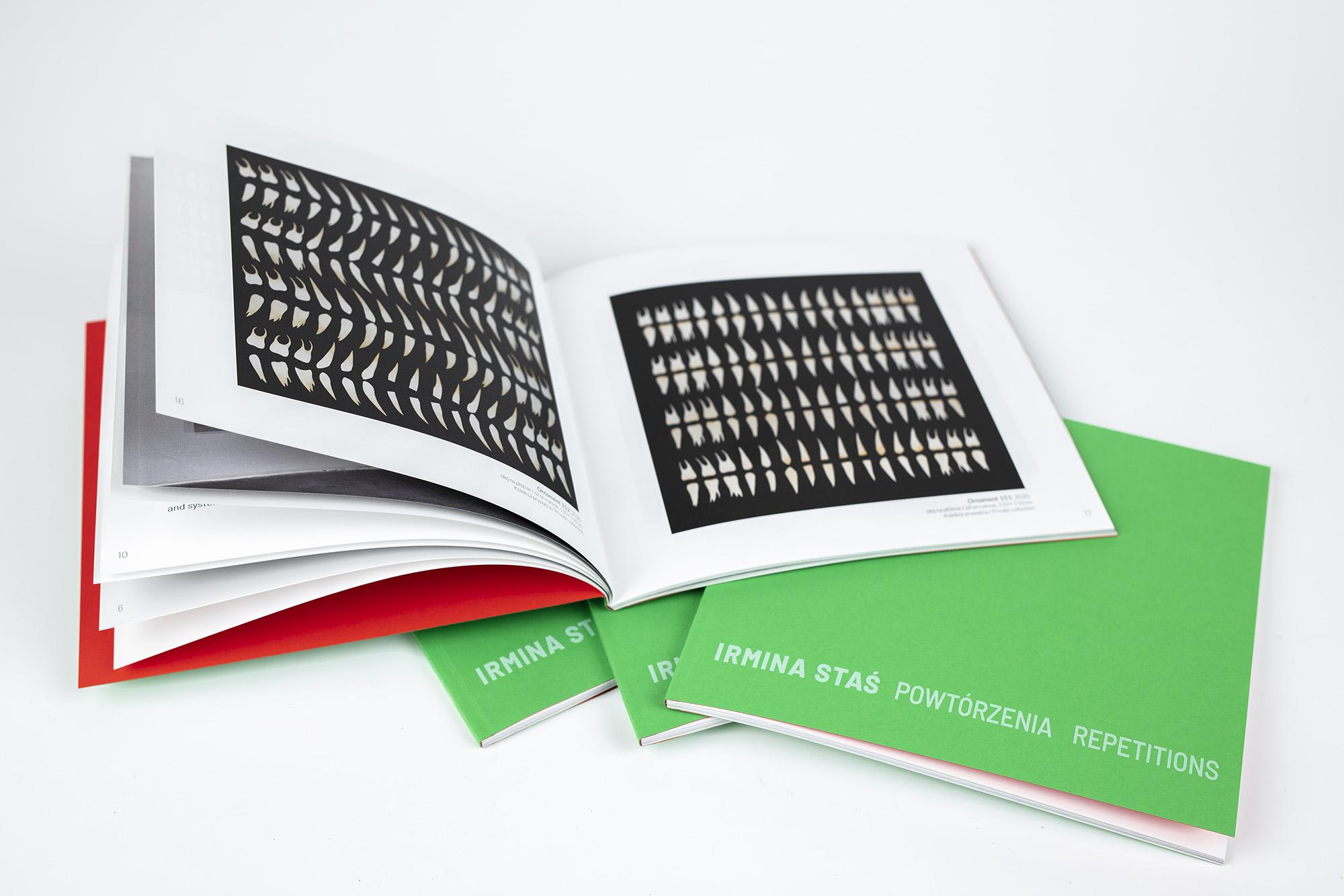 Wydany przez Galerię Bielską BWA katalog „Powtórzenia” zawiera polską i angielską wersję językową. Esej Karola Sienkiewicza na temat twórczości Irminy Staś wzbogacony jest kolorowymi ilustracjami: 20 reprodukcjami prac artystki, które fotografował Norbert Piwowarczyk oraz 13 zdjęciami z wystawy autorstwa Krzysztofa Morcinka. Wydawnictwo w formacie 215 x 205 mm liczy 60 stron. Okładka została sklejona z dwóch kolorów papierów barwionych w masie – zielonego na zewnątrz i czerwonego wewnątrz, co nawiązuje do jednej z serii obrazów Irminy Staś, prezentowanych na bielskiej wystawie, „Chlorofil i krew”. Środek wydrukowany jest na wysokiej jakości papierze ekologicznym Munken Polar. Nakład limitowany – 200 egzemplarzy. Cena – 40 zł.