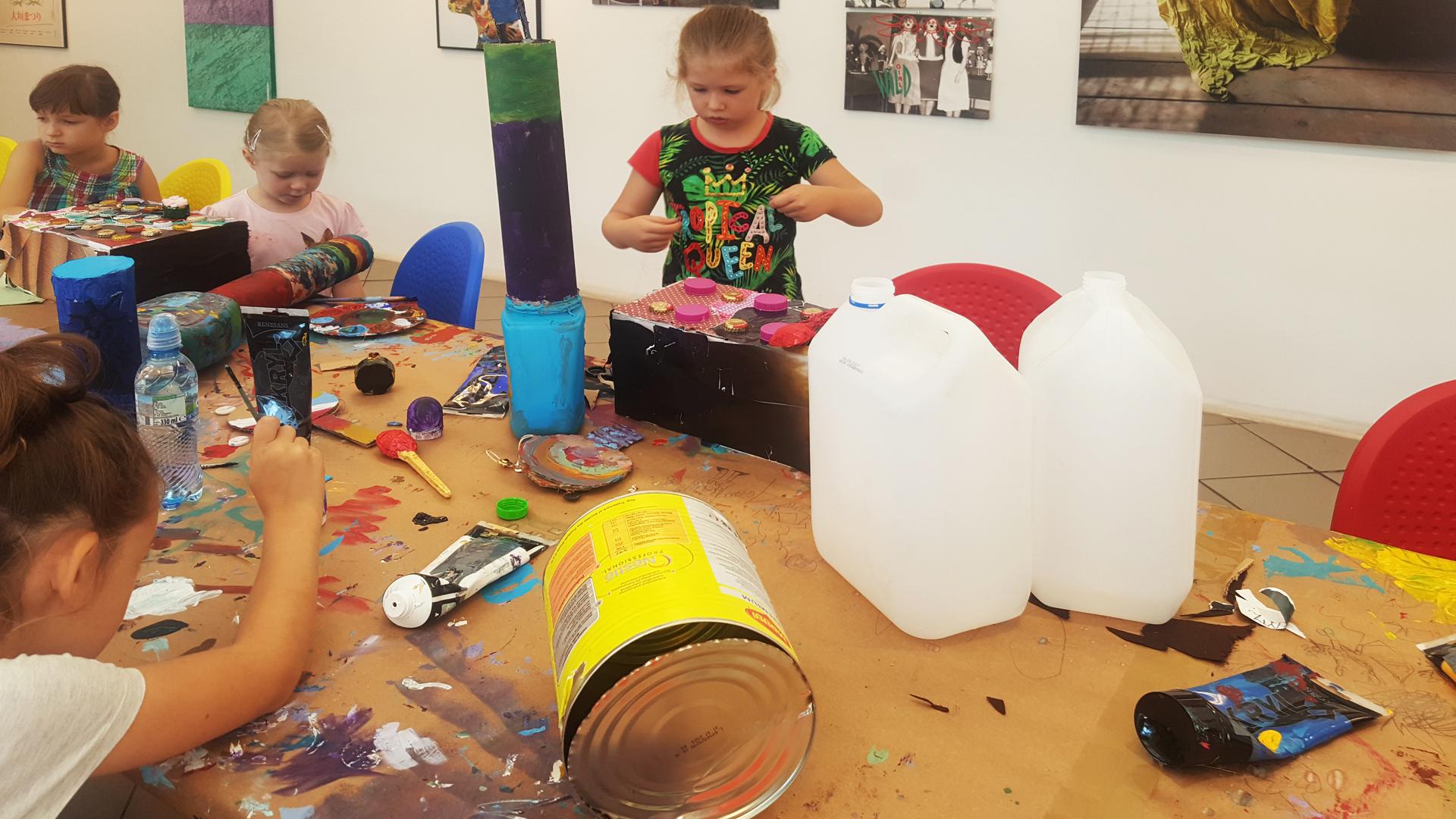 Do ich stworzenia wykorzystają zużyte puszki, rury pcv, butelki, pudła kartonowe, druty, wiadra. W efekcie tych działań powstaną bębny, flety, grzechotki, instrumenty strunowe, na których pod koniec warsztatów uczestnicy wykonają minikoncert.