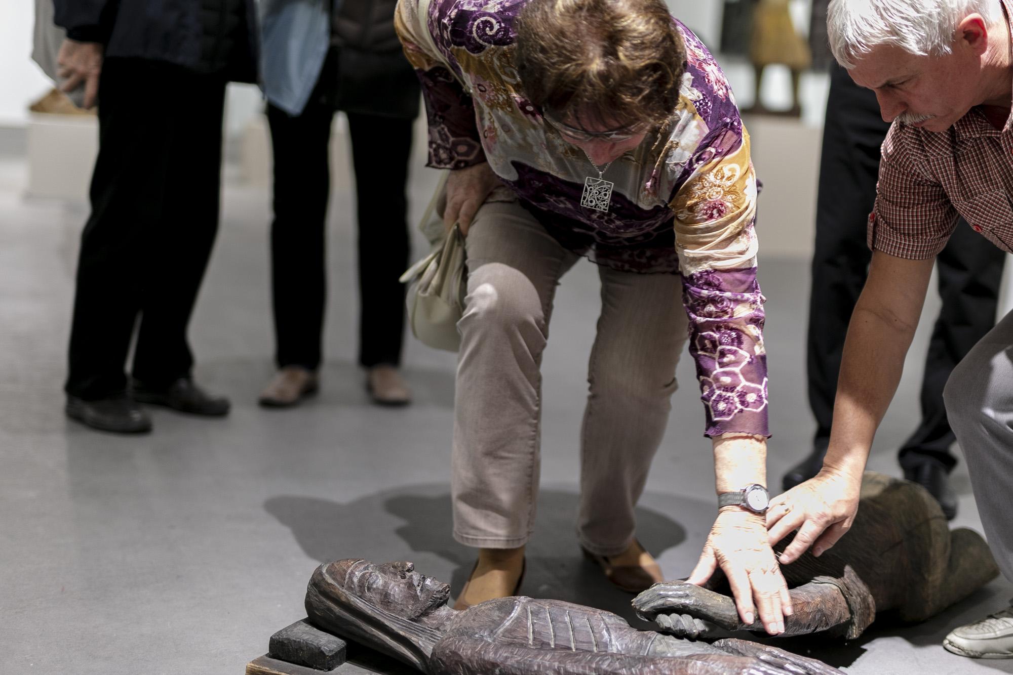 Po wystawie rzeźby oprowadzani będą członkowie Koła Grodzkiego Polskiego Związku Niewidomych w Bielsku-Białej - osoby, które niejednokrotnie uczestniczyły w oprowadzaniu haptycznym w Galerii Bielskiej BWA.