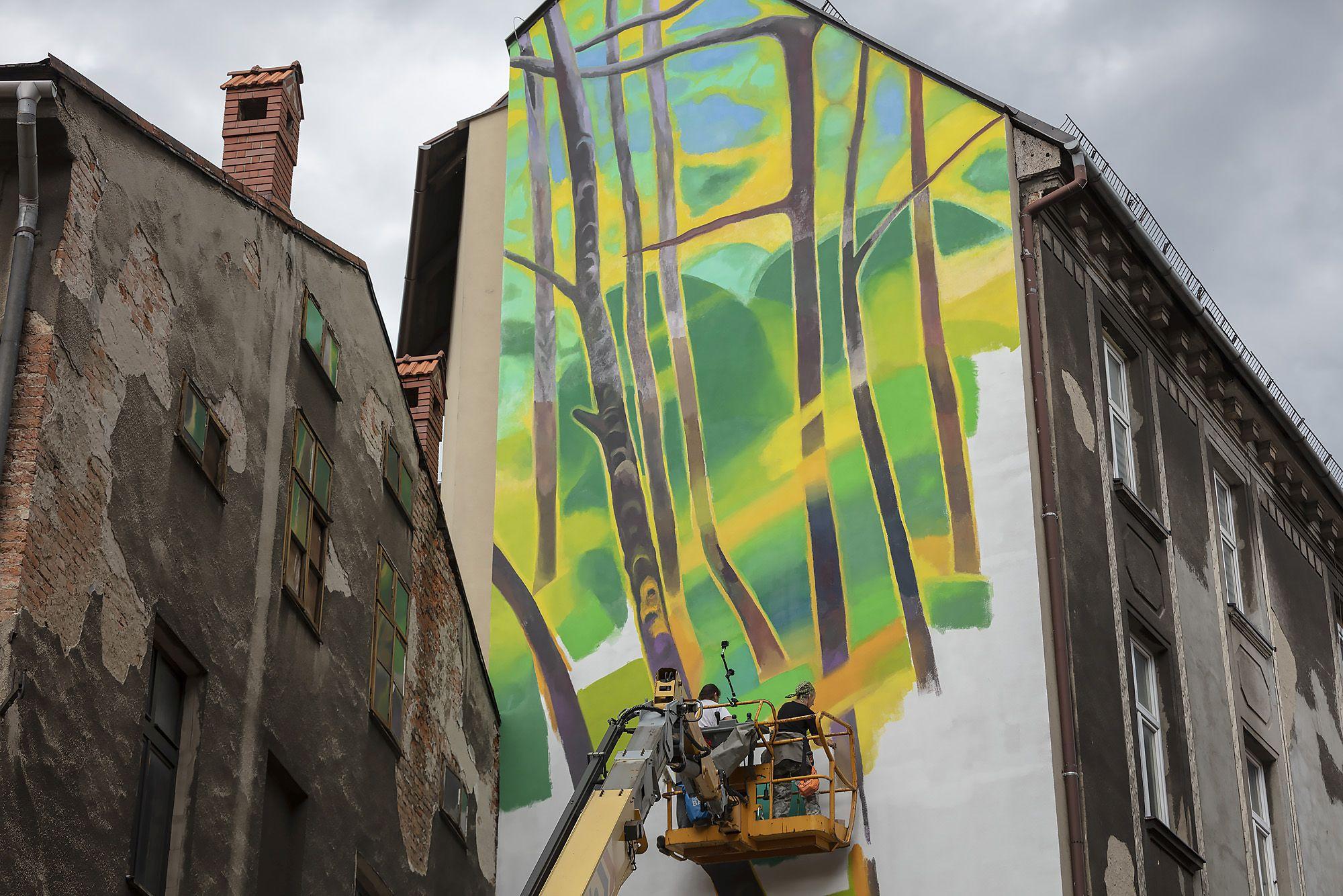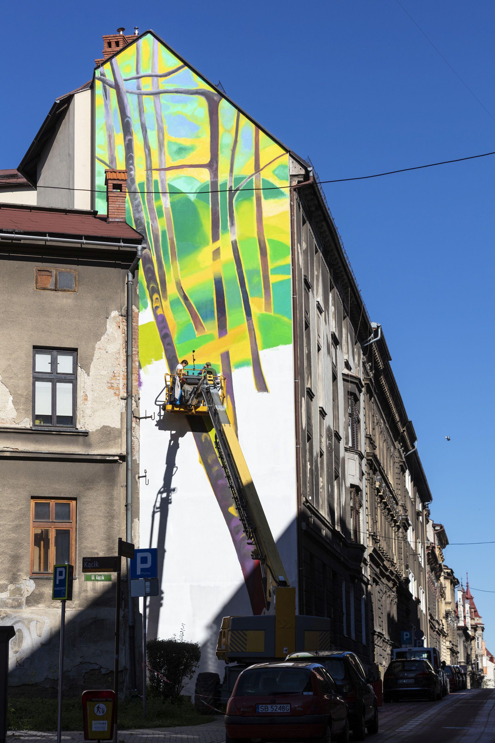 Na ścianie bielskiej kamienicy przy ul. Adama Mickiewicza 9 powstał mural dedykowany drzewom. Artystka wykorzystała specjalne farby pochłaniające zanieczyszczenia powietrza.
