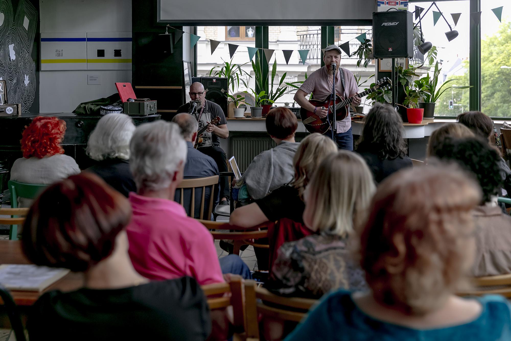 Po wernisażu, o godz. 19.00, odbędzie się koncert zespołu KSW Blues, znanego m.in. z festiwalu Rawa Blues. Członkowie zespołu: Chiro Chirowski i Krzysztof Wydro – Wir2Oz zaprezentują autorskie teksty i muzykę wyrastającą z tradycji country, bluesa oraz folku, przefiltrowaną przez osobiste fascynacje.