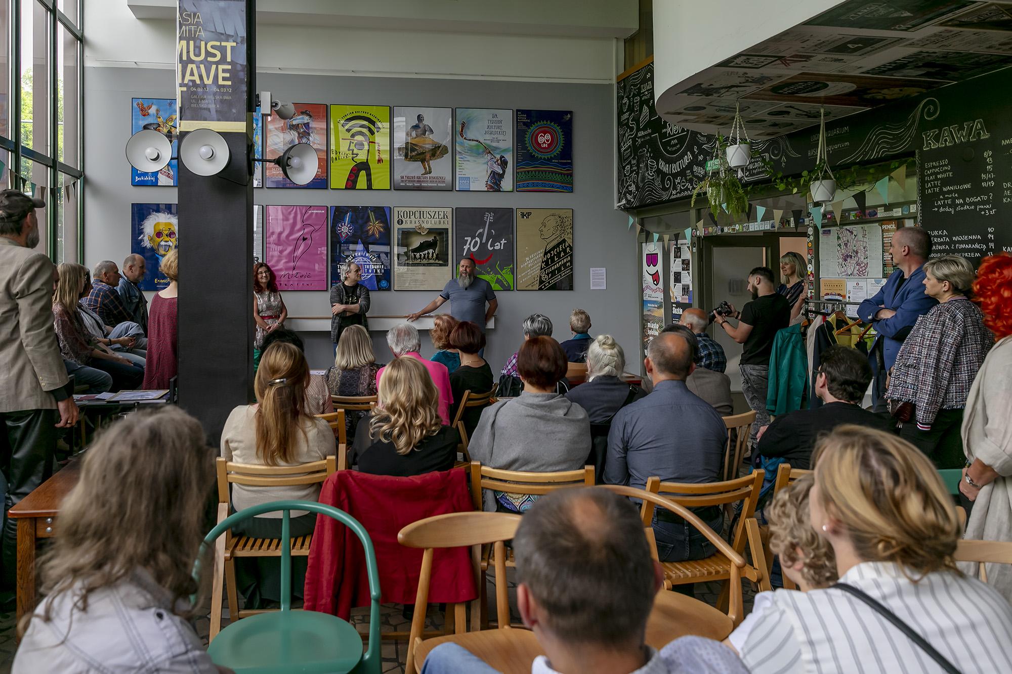 Otwarcie wystawy plakatów promujących wydarzenia kulturalne w Bielsku-Białej i regionie. Koncert zespołu KSW Blues.