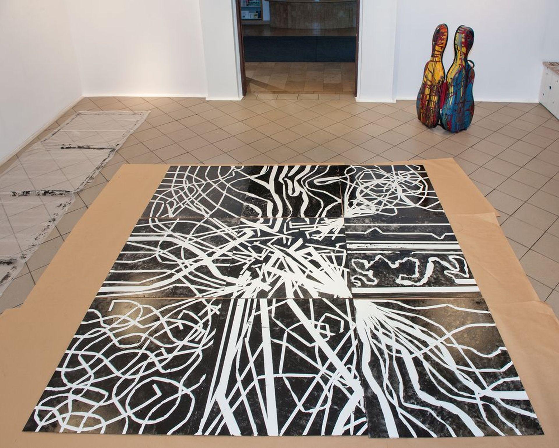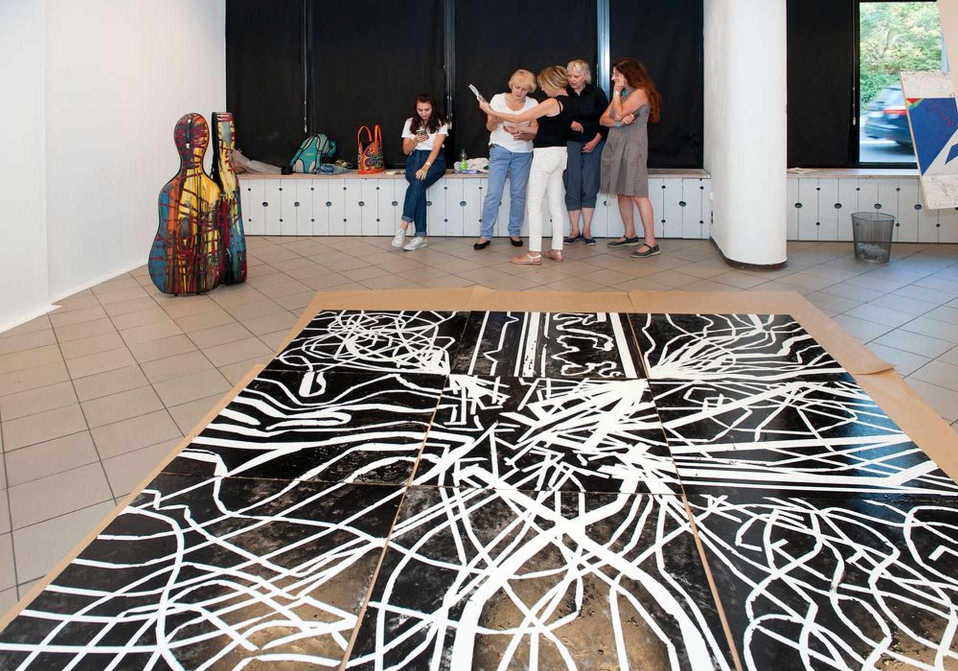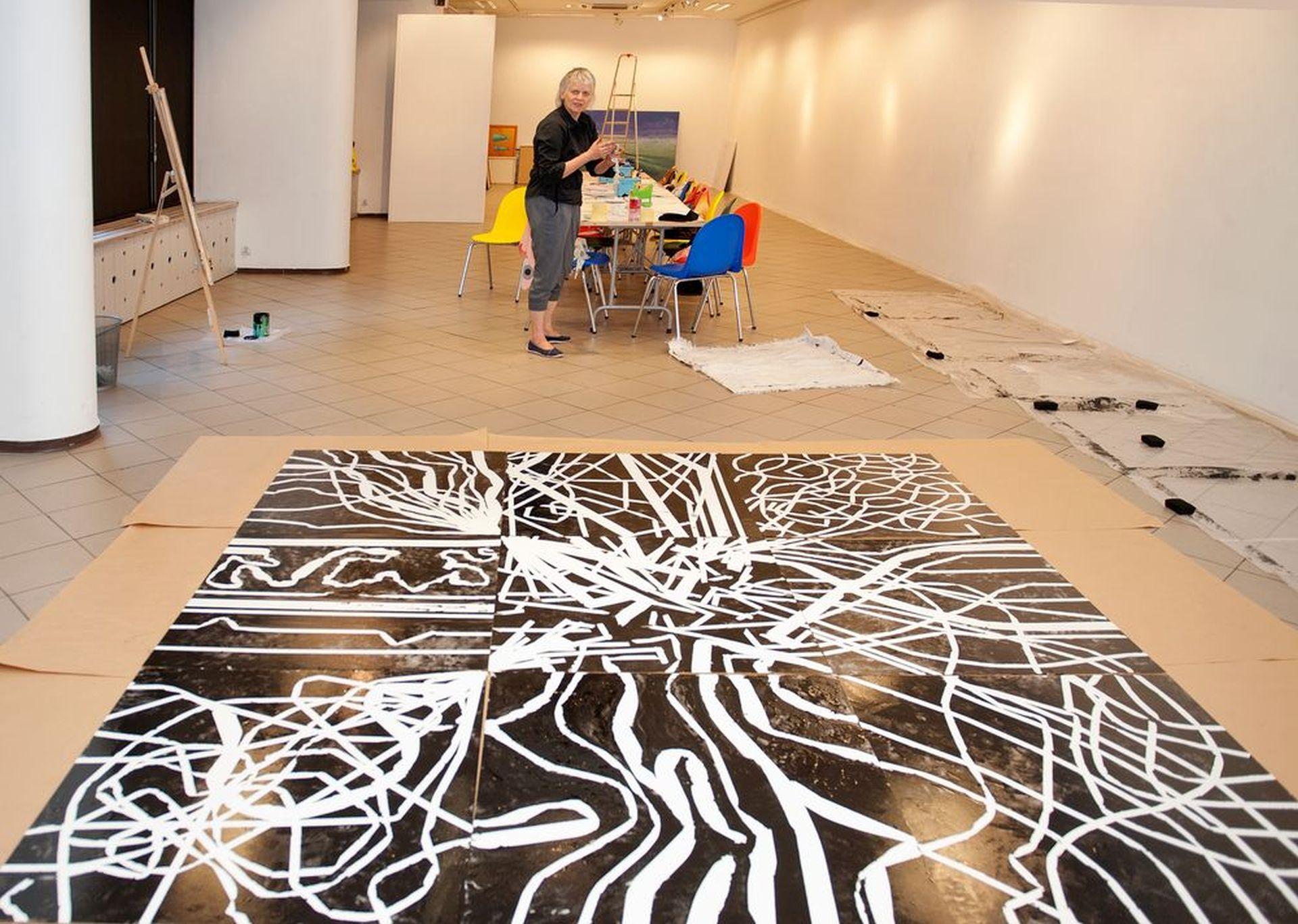 Podczas warsztatów towarzyszących wystawie artystki pt. „Menora_mem”, powstała wielkoformatowa abstrakcyjna kompozycja.