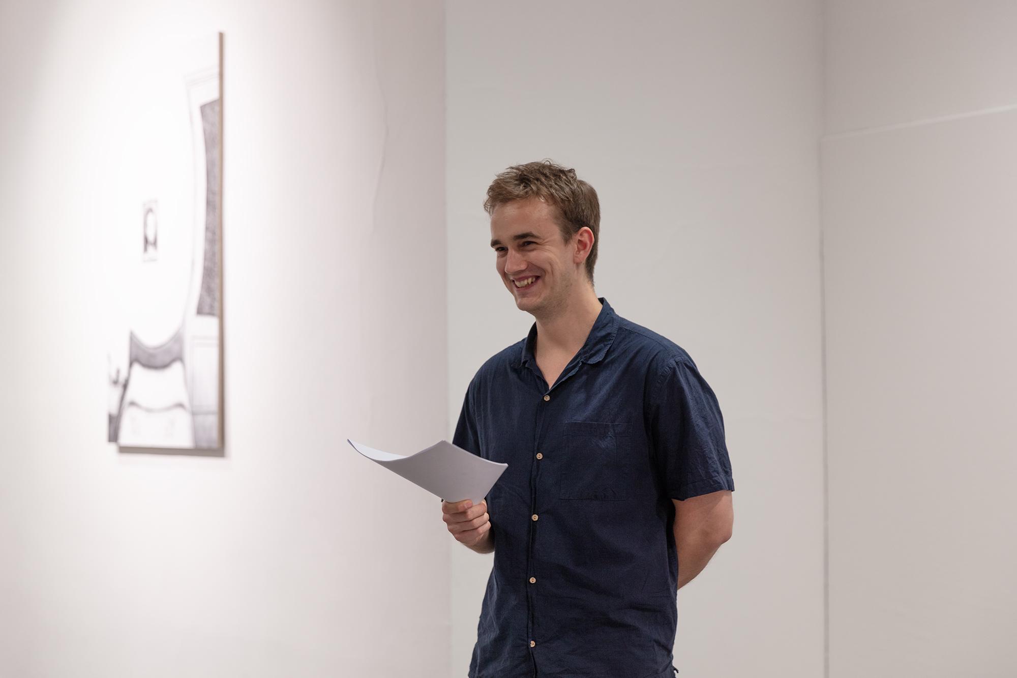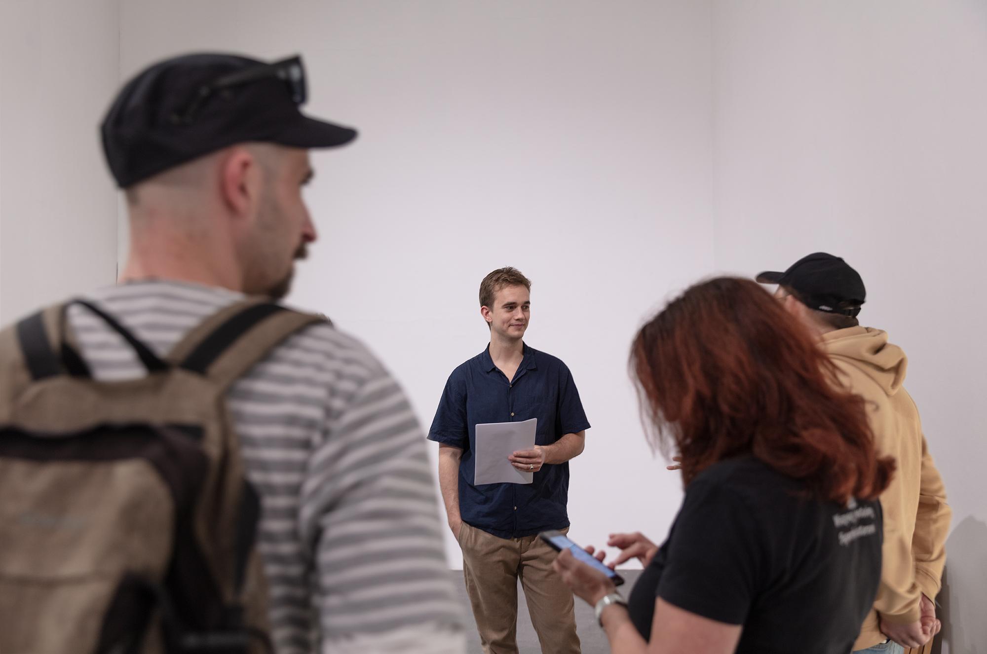 Oprowadza Miłosz Wujek, doktorant w Szkole Doktorskiej Nauk Społecznych UJ, pracujący nad rozprawą o współczesnym zastosowaniu teorii psychoanalitycznych w myśleniu o seksualności. - Oprowadzanie kuratorskie