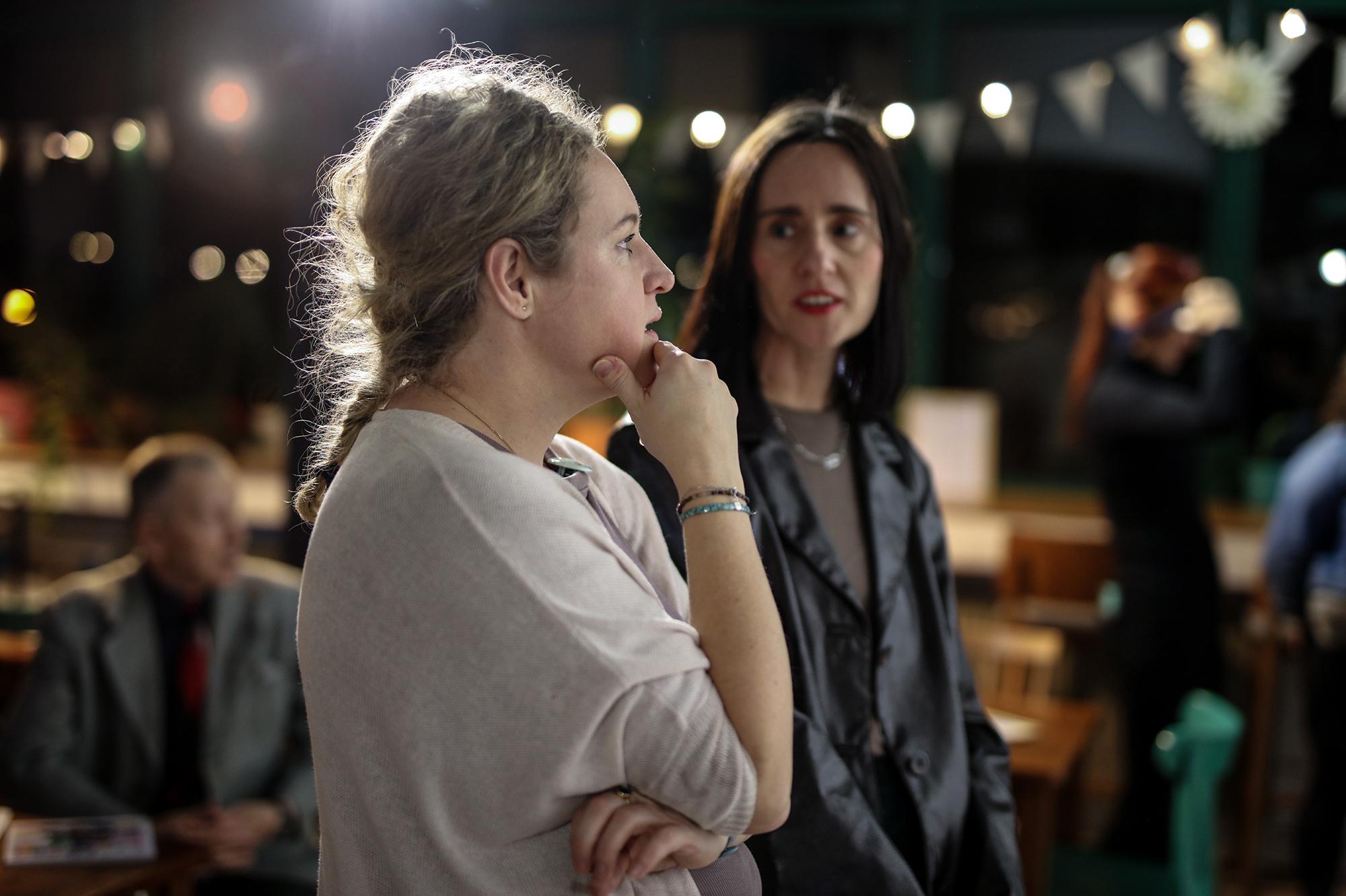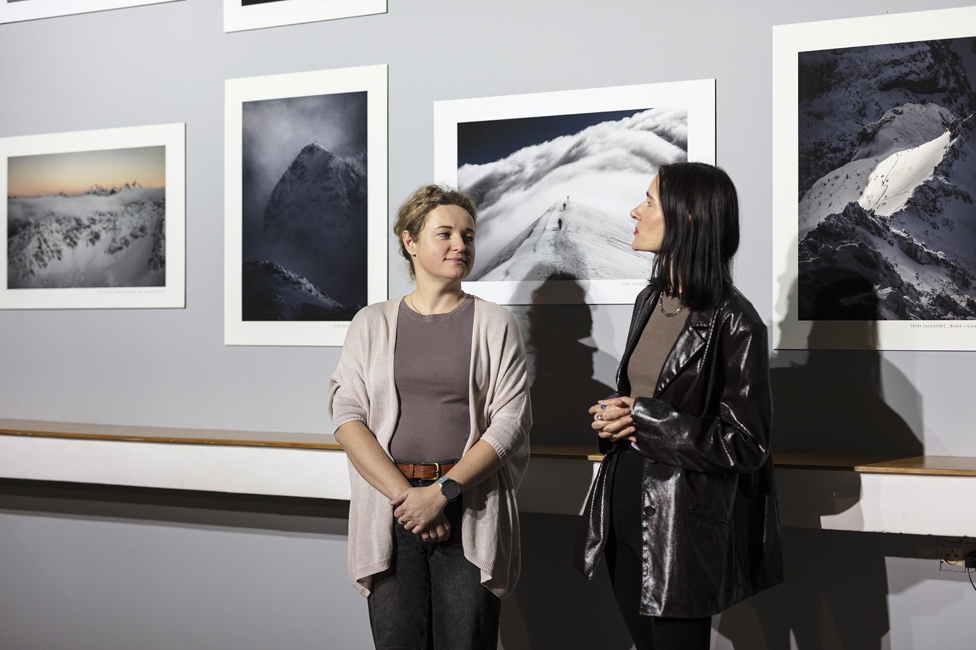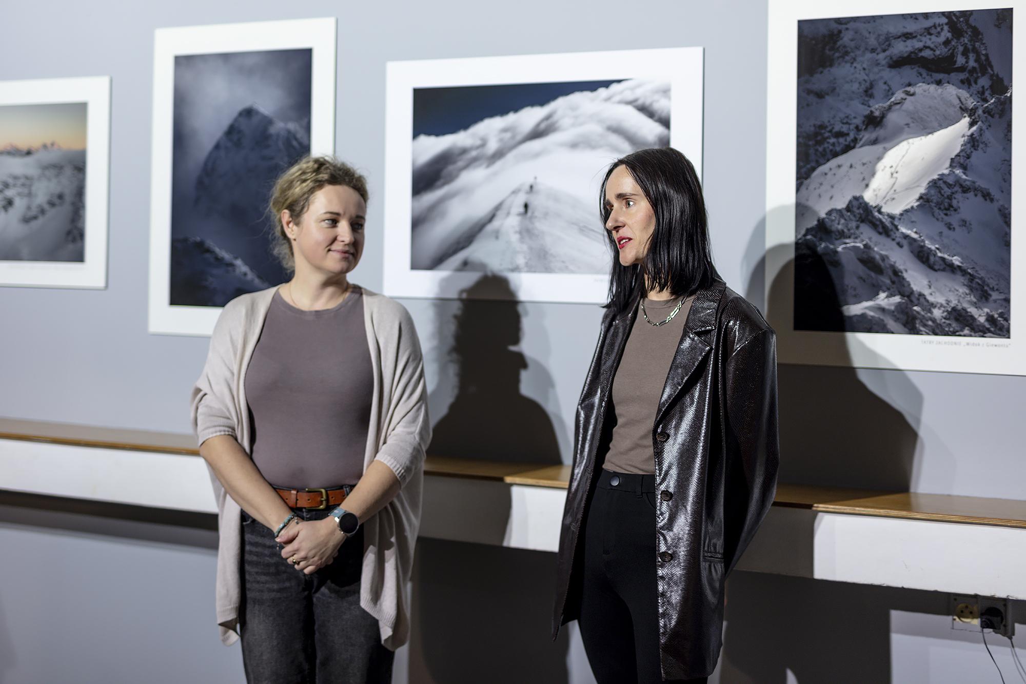 od lewej Barbara Grubka, Ada Piekarska. Wernisaż wystawy Barbara Grubka – „Nieoczywiste”, Galeria Bielska BWA, Klubokawiarnia Aquarium, 2 grudnia 2024. Fot. Krzysztof Morcinek