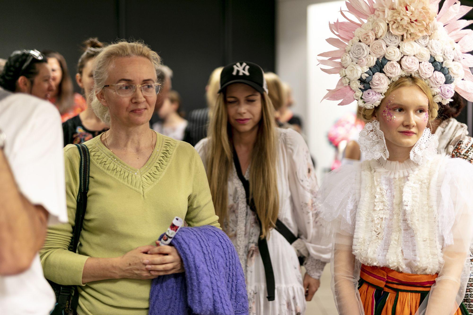 Wierne tradycji ludowej bibułkowe korony i wieńce na głowach modelek. Oryginalne makijaże i biżuteria – kolaż różnych światów w stylu etno.