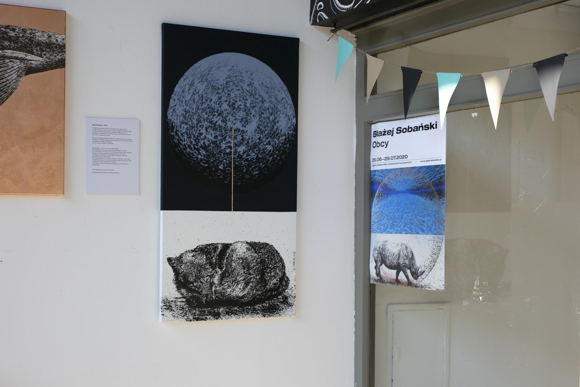 Wystawa najnowszych prac malarskich Błażeja Sobańskiego, znanego dotąd gównie z mniejszych form – rysunków tuszem na papierze z dodatkiem szlagmetalu.