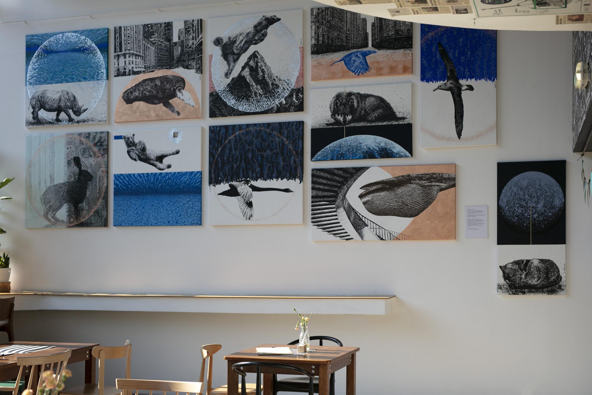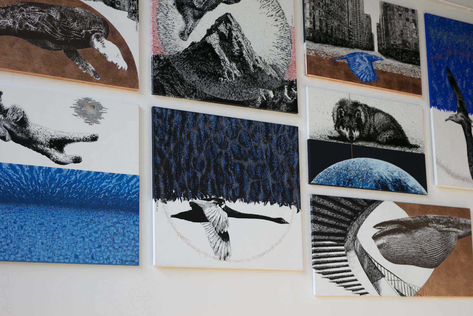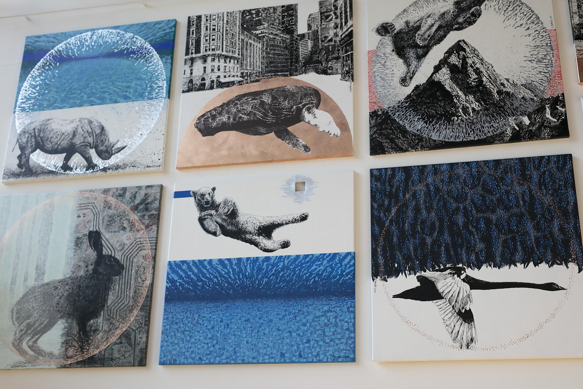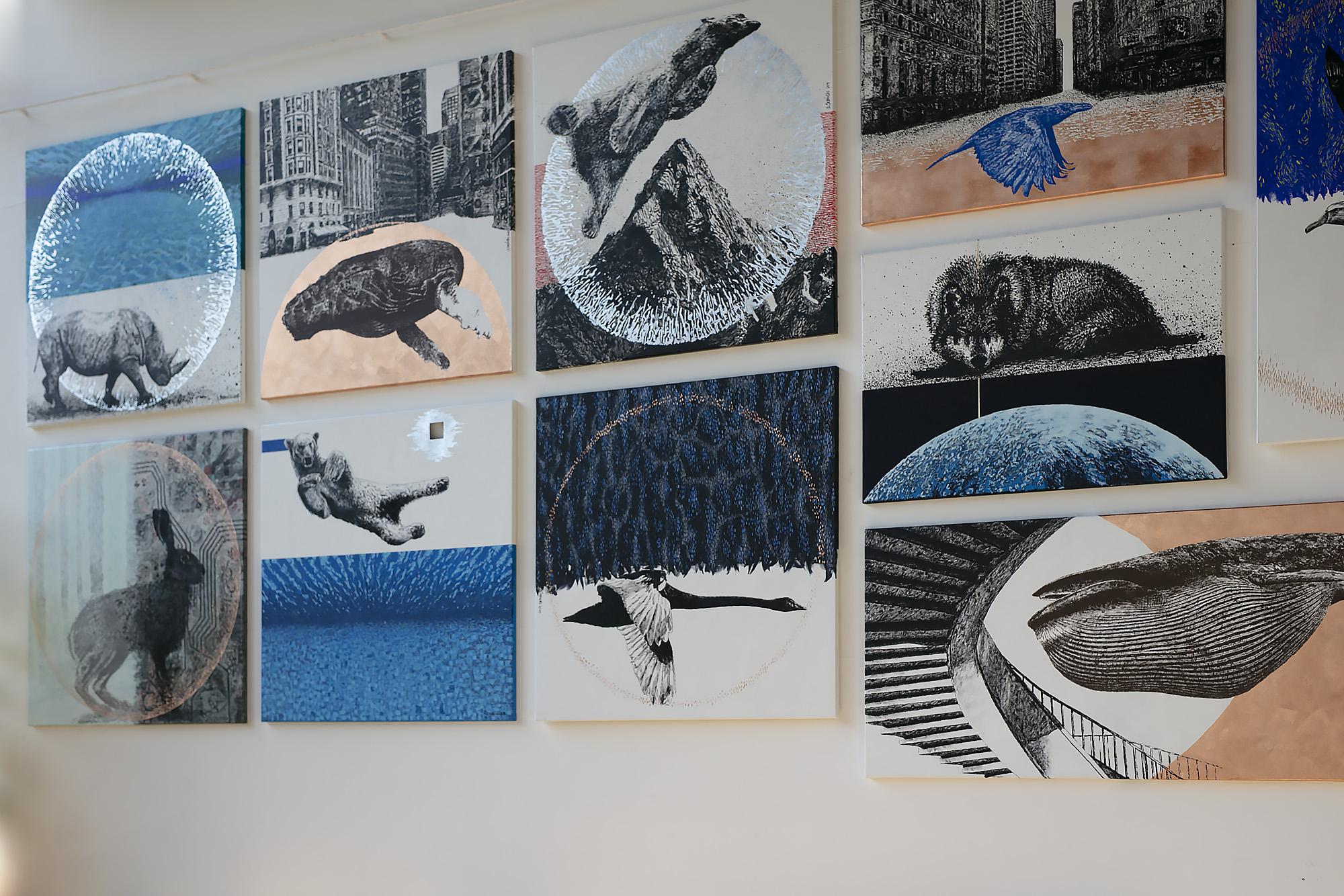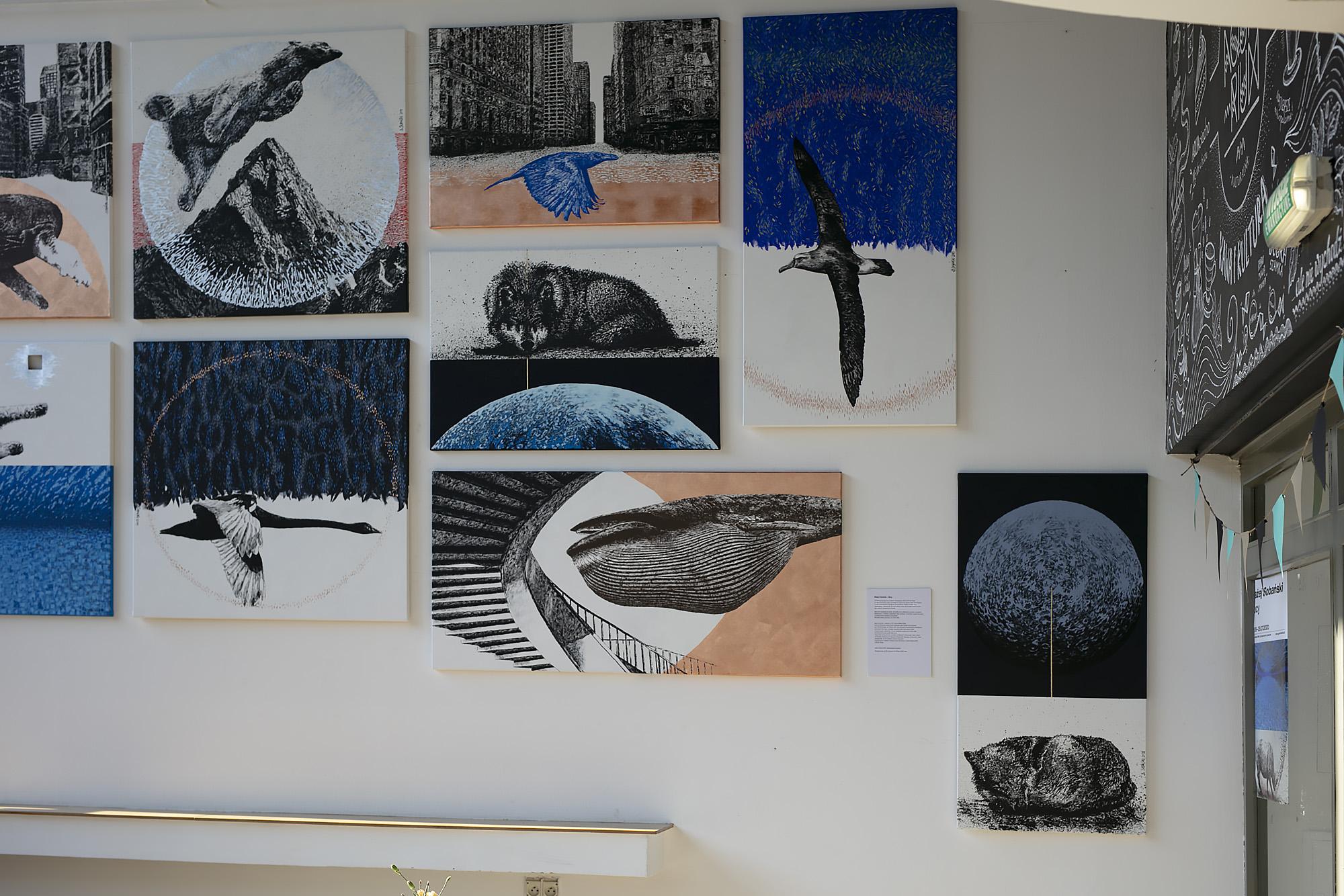 Prezentowane prace przenoszą widza w nierealne światy zapełnione wizerunkami zwierząt, znanych dobrze z ekosystemów naszej planety.
