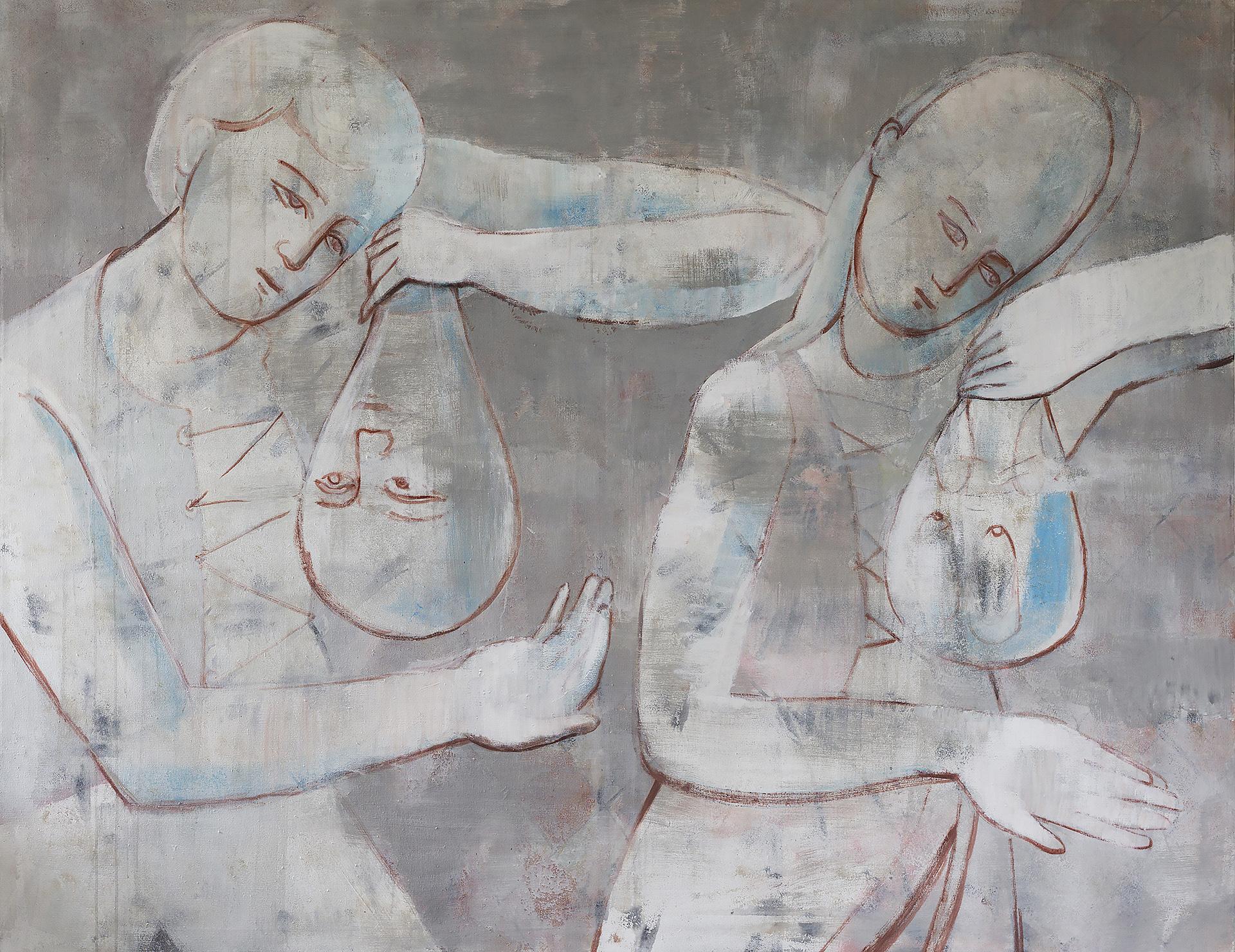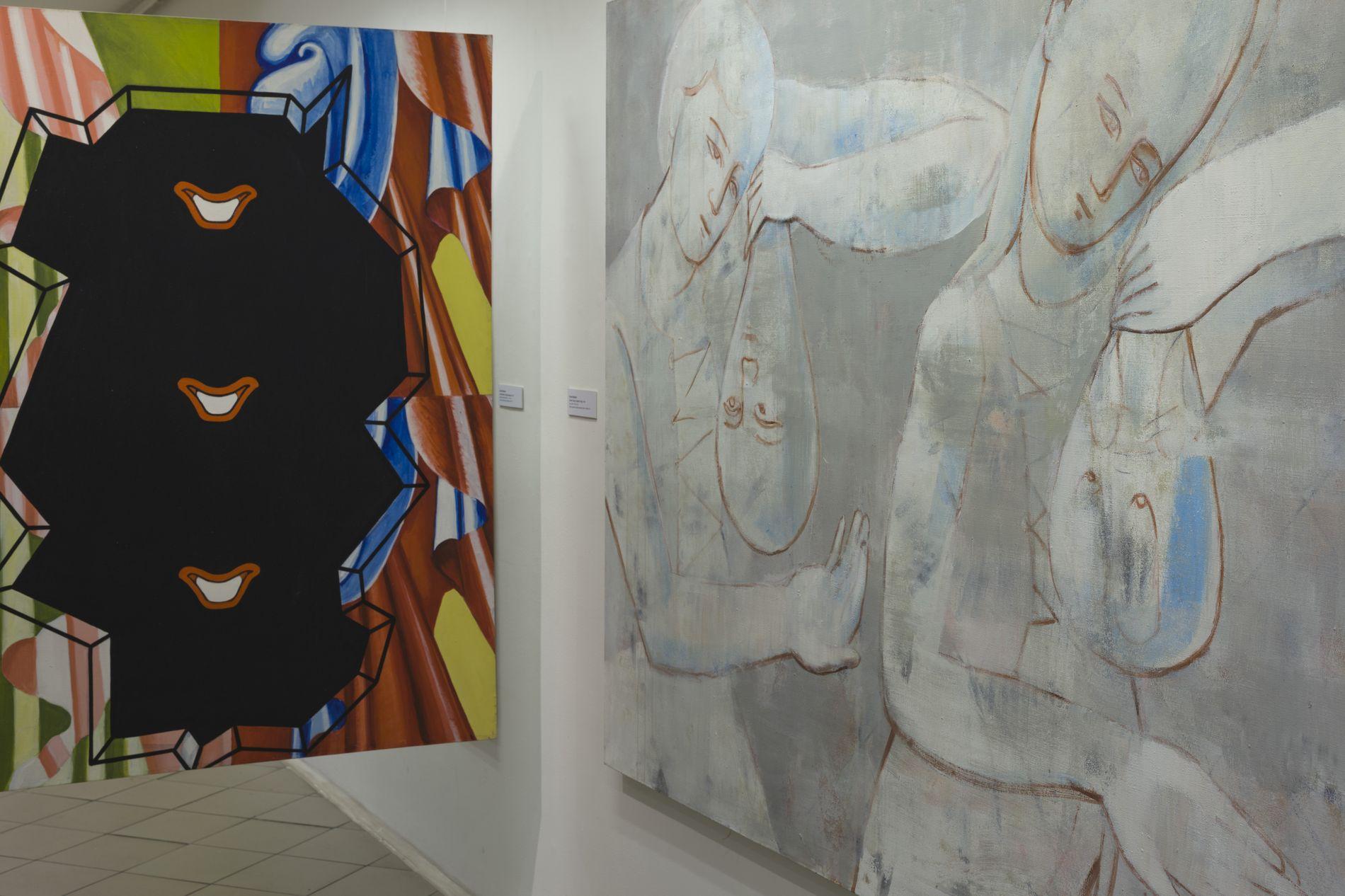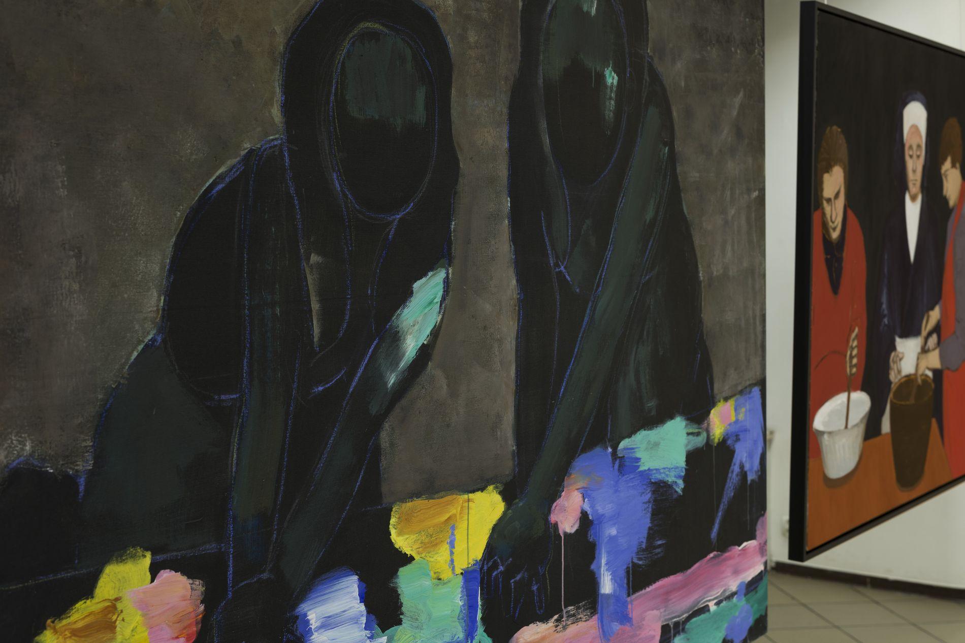 Wystawa jest spotkaniem dwóch niezwykłych artystów i dwóch odmiennych stylistyk malarskich. Mimo różnic w warstwie materialnej, łączy je silny akcent stawiany na warstwę duchową obrazu. Analityczna postawa wychowanego w kulturze protestanckiej Daniela Balabána, interpretującego średniowieczne portrety mistrza Teodoryka postmodernistycznymi zabiegami malarskimi, spotyka się z oszczędnymi w formie obrazami Jarosława Modzelewskiego, silnie działającymi płaszczyzną koloru i syntetycznie przedstawianą postacią człowieka. Obecność symboli religijnych w pracach obu malarzy, staje się pretekstem do dyskusji na temat wartości moralnych i roli artysty w materializowaniu piękna – także w sferze duchowej. Dzięki intuicji i wrażliwości oraz wypracowanej technice malarskiej obaj umiejętnie stawiają pytania o sens ludzkiej egzystencji. Buntowniczy temperament Balabána kontrastuje z kontemplacyjną postawą Modzelewskiego. Pojawiające się w ich obrazach akcenty humoru i ironii uwalniają autorów od patosu i moralizowania. Duże formaty prezentowanych prac pozwalają widzowi dosłownie zanurzyć się w malarstwie.