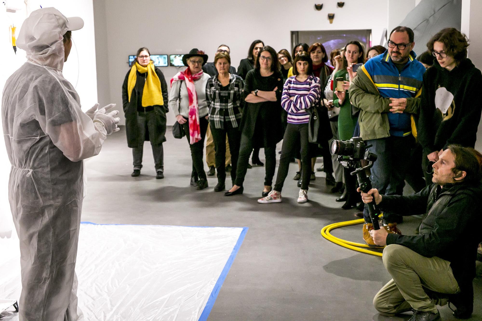 Kuratorami wystawy są: prowadzący Pracownię Działań Audiowizualnych i Performatywnych prof. dr hab. Kamil Kuskowski oraz adiunkt dr Dariusz Fodczuk.