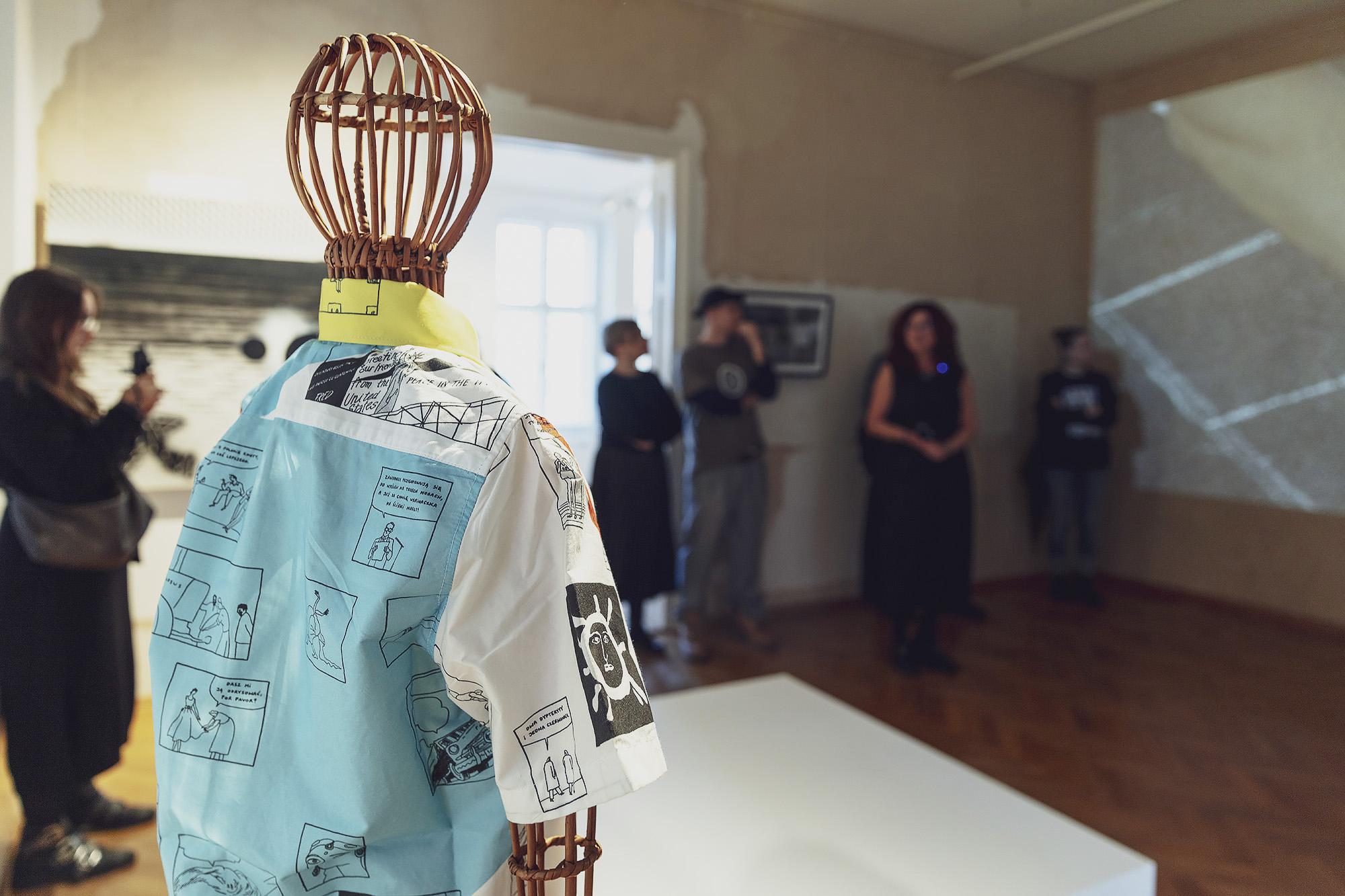 Obraz bez tytułu Jacka Dygi, nagrodzony na Bielskiej Jesieni w 1994 roku, który ostatnio trafił do bielskiej kolekcji, odnosi się do świata przyrody niszczonej przez człowieka. Uproszczony pejzaż, sprowadzony do czarnych linii, równoległych lub krzyżujących się, jest tłem obrazu „Maus 1” Wilhelma Sasnala – pierwszego z cyklu prac artysty nawiązującego do słynnego komiksu Arta Spiegelmana, który w formie powieści graficznej opowiedział losy swojego ojca Władka, więźnia obozu Auschwitz. Jedna ze scen komiksu rozgrywa się w Bielsku-Białej – i jest to nawiązanie do historii miasta i jego żydowskich mieszkańców, podobnie jak instalacja TNCBH – fotografia i projekcja wideo duetu Memorymorph – Małgorzaty Łuczyny i Jacka Złoczowskiego. Artyści zdokumentowali swoją ingerencję w przestrzeń placu i budynku Galerii Bielskiej BWA, w której odtworzyli zarys synagogi, istniejącej tu w latach 1881–1939. Do nowszej historii – Światowego Festiwalu Młodzieży w 1955 roku w Warszawie – odnosi się słynny komiks „Festiwal” Jacka Świdzińskiego, którego fragmenty zostały nadrukowane na koszuli jego projektu, przygotowanej na wystawę „Pokój”.