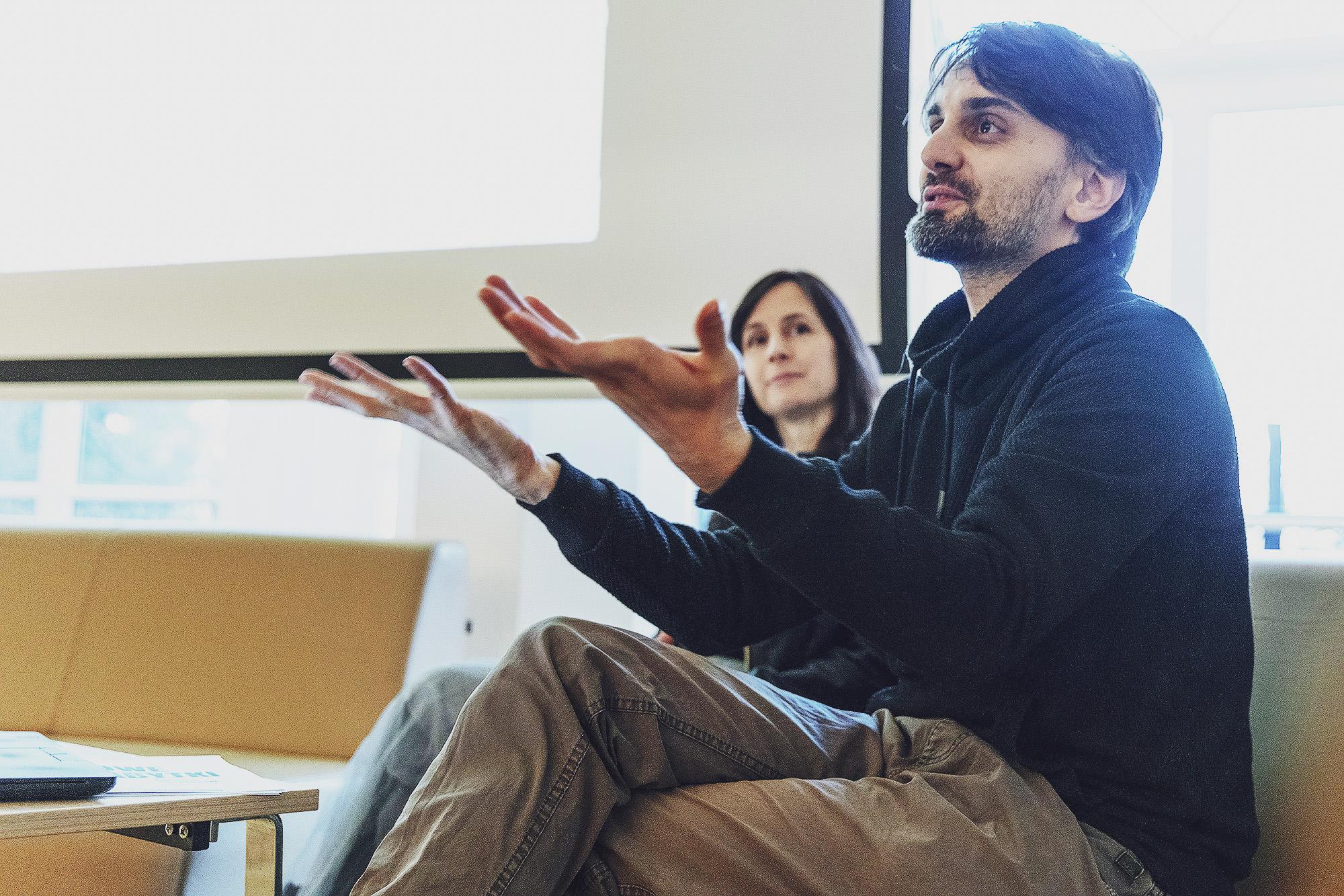 godz. 16.00 – Duet Memorymorph – Jak powstała TANCEBA? – spotkanie z Małgorzatą Łuczyną i Jackiem Złoczowskim, artystami, autorami prezentowanej na wystawie pracy TNCBH, kuratorami wystawy TANCEBA, nawiązującej do historii synagogi, istniejącej do 1939 roku w miejscu obecnej Galerii Bielskiej BWA oraz do pojęcia „pamięć miejsca”.