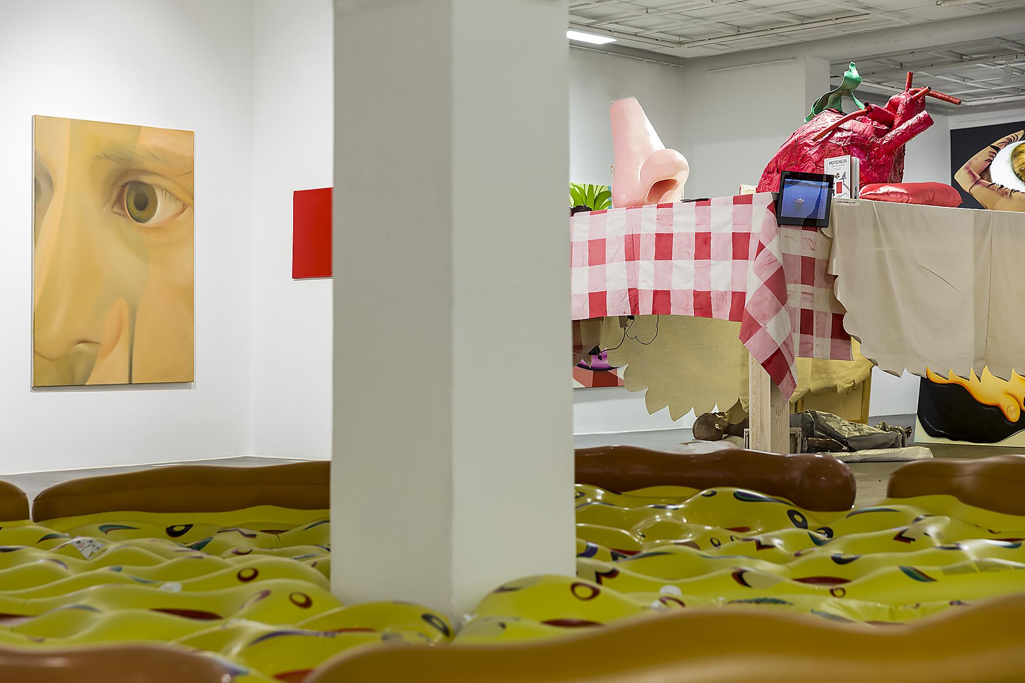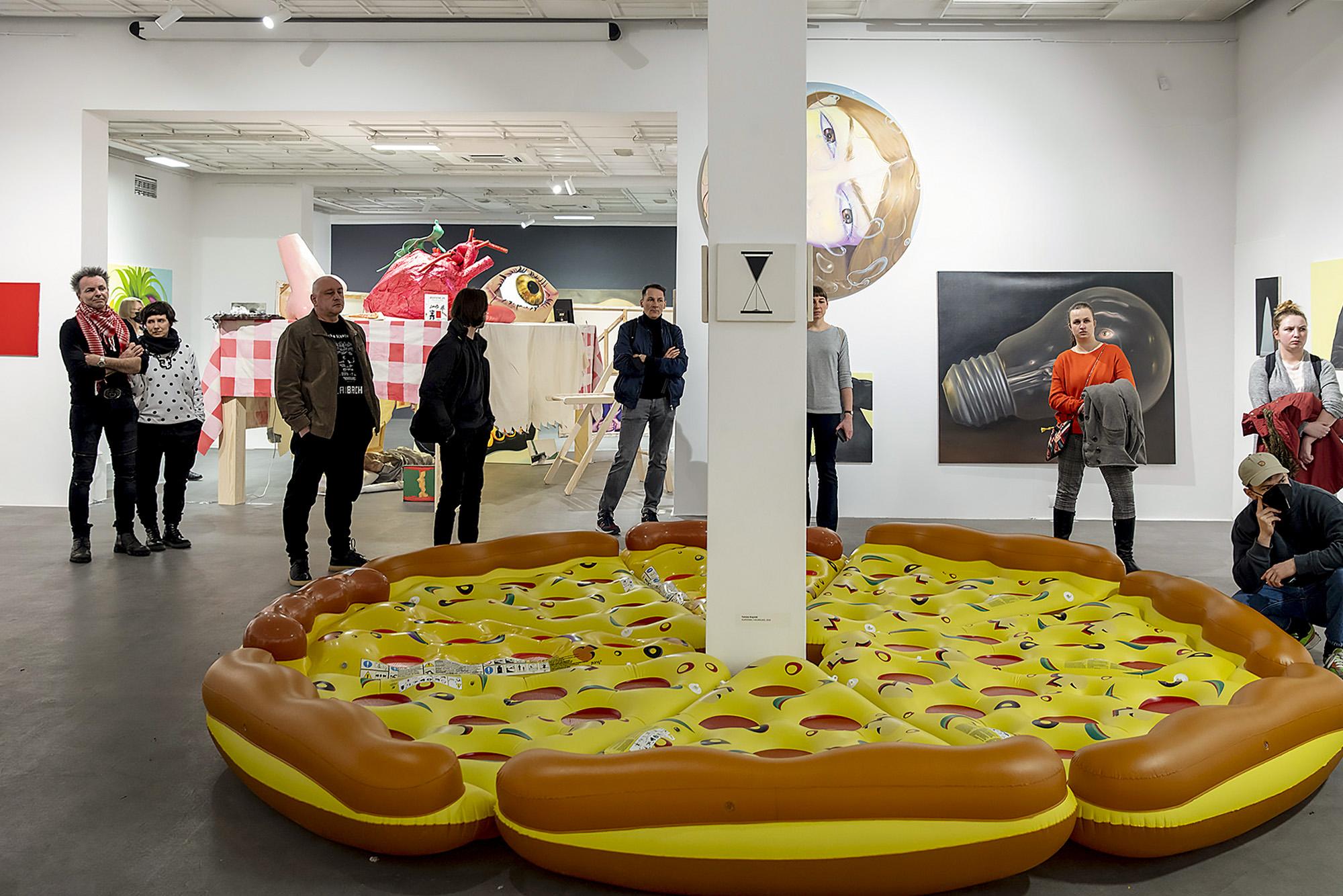 Na wystawie w bielskim BWA, humory, które w Zielonej Górze zostały wyabstrahowane z dorobku Potencji i od siebie odseparowane, zostają na powrót zmieszane – tak jak łączy się składniki na powierzchni pizzy i tak jak afekty mieszają się w ludzkim życiu psychicznym.