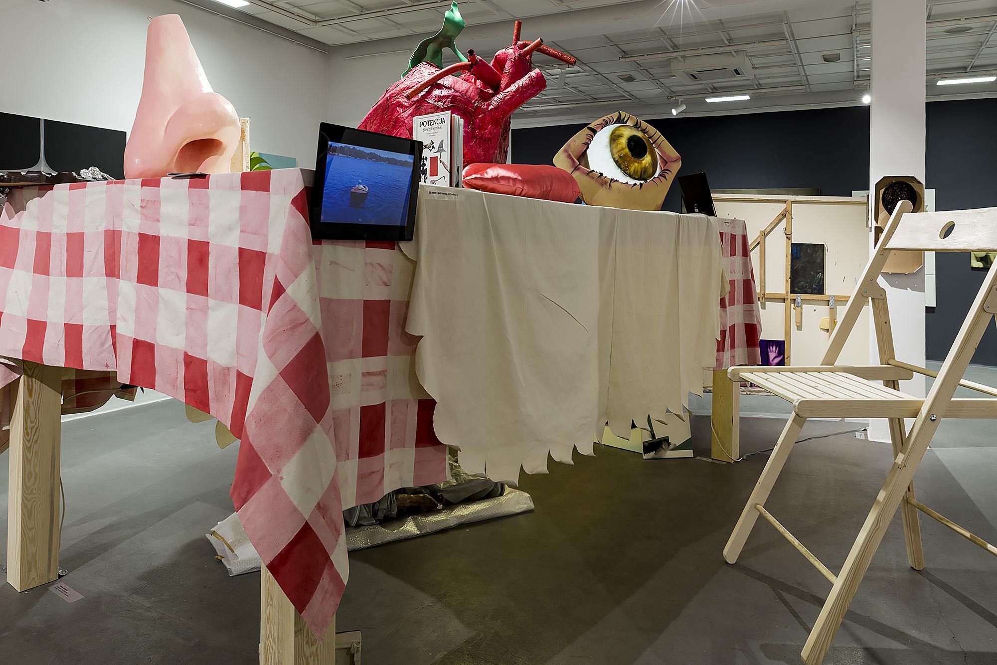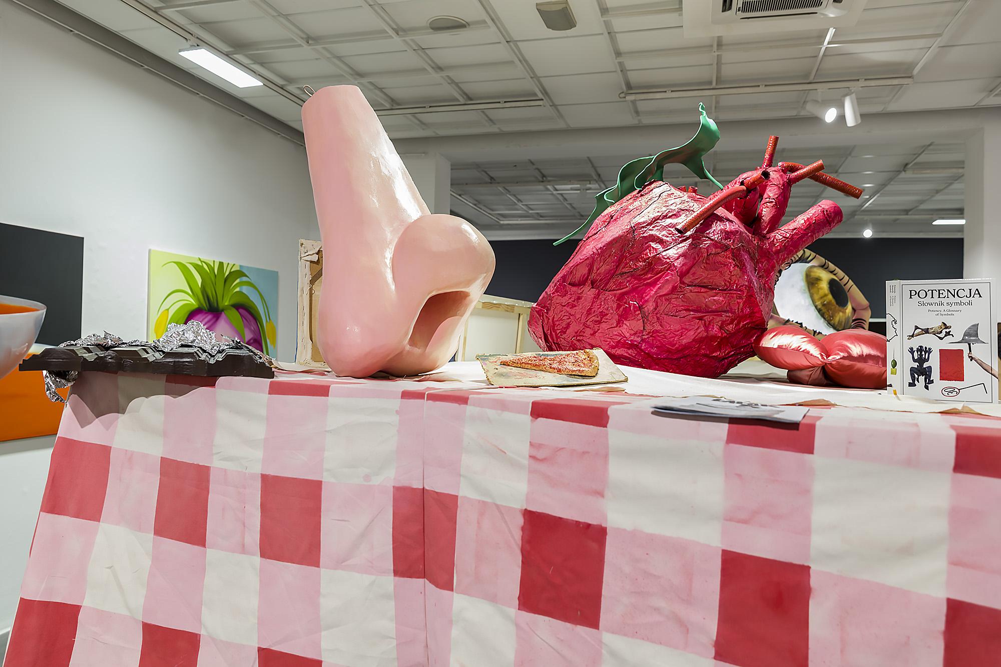 Drugą alegorią wprowadzoną na scenę wystawy jest Stół. Zgodnie z humoralną zasadą czwórpodziału, wspiera się on na czterech nogach i służy jako alegoria pejzażu. Ów pejzaż to krajobraz po uczcie; stół jest zastawiony daniami z menu twórczości Potencji uzupełniającymi wybór prezentowanych na wystawie obrazów. W tym menu znajdują się między innymi filmy, wydawnictwa i artefakty powstałe w ramach interdyscyplinarnych działań grupy – a także książka „Potencja. Słownik symboli”, która powstała z chęci skatalogowania motywów, wątków i wspólnych tematów trojga artystów. Projekt graficzny „Słownika” wykonała Kaja Gliwa, treść wymyślonych przez nich haseł napisał Łukasz Zawada, a ich ilustracjami są reprodukcje obrazów, rysunków, obiektów, plakatów, zdjęć i kadrów z filmów Potencji.