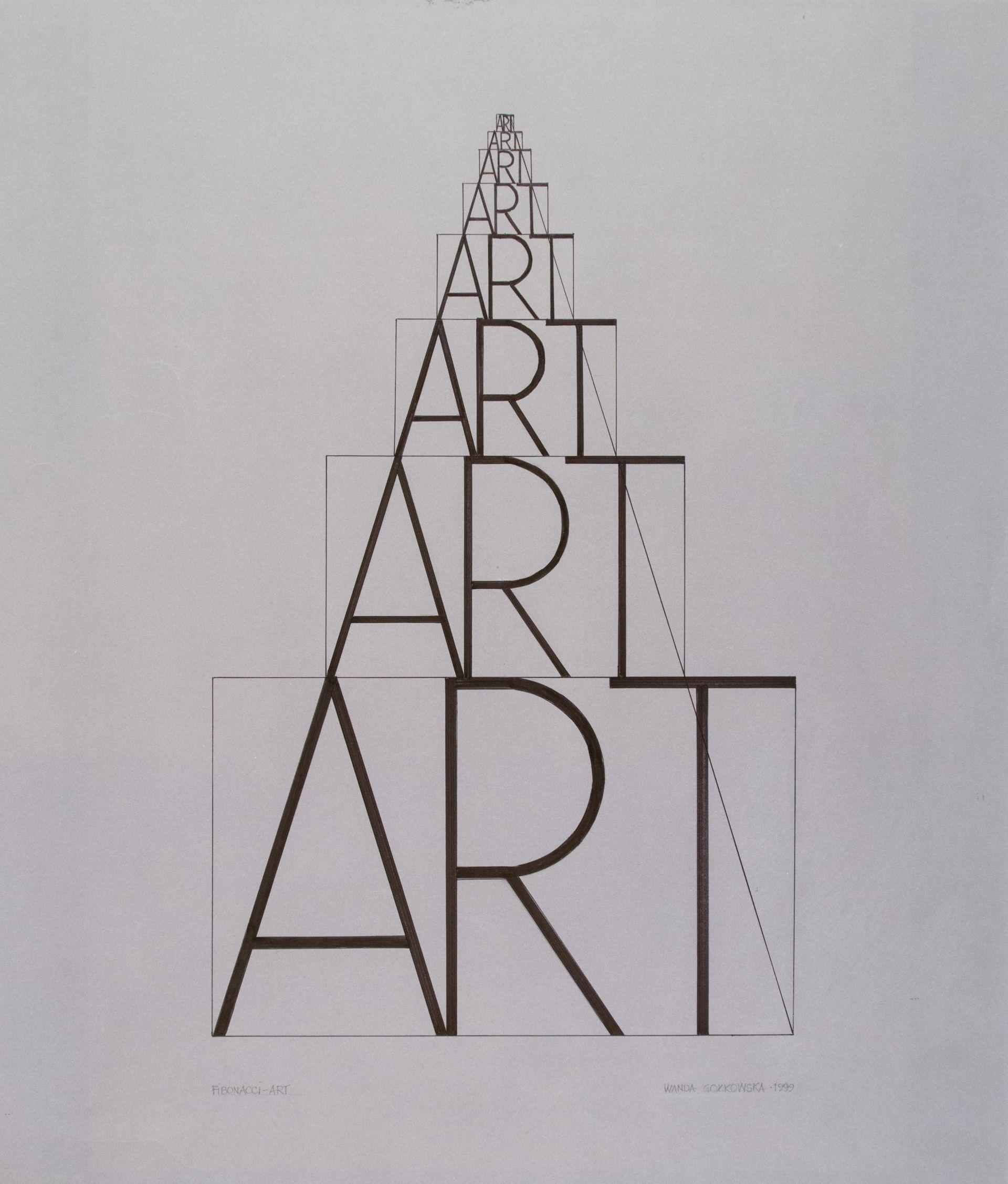 Czerpanie ze „złotego podziału” i sekwencji liczbowej Fibonacciego możemy zauważyć niemal w całej twórczości Wandy Gołkowskiej, jednak w latach 80. i 90. XX wieku stały się one głównym motywem pracy tej artystki. Systemy matematyczne i zależności przestrzenne wynikające z zasad geometrii były dla Gołkowskiej językiem, którego używała do badania i przedstawiania świata oraz praw nim rządzących. Poszukując w przyrodzie odpowiedzi na pytania o istotę funkcjonowania rzeczywistości, kolekcjonowała przez lata rośliny, liście, trawy, gałęzie, pióra itp. Analizowała zasady jej budowy, systemy organizacji oraz działania jej elementów. Pasjonowała ją niezwykła i złożona geometria natury, mająca u swych podstaw matematyczną logikę, rozszyfrowaną właśnie przez Euklidesa, Fibonacciego, Lucasa, Cantora czy Mandelbrota. Język Gołkowskiej aplikował więc mądrość i piękno przyrody do kształtowania nowych form, składających się z układów równoległych linii, tworzących rytmy i geometryczne konstrukcje, niekiedy złożone, innym razem bardzo syntetyczne struktury przypominające wieże, latawce, strzałki i pejzaże, emanujące zawsze niezwykłą harmonią. Rytmy powtarzających się linii mogą sugerować wrażenie ruchu, drgania płaszczyzn, ale też ciągle odradzający się proces rysowania z przesunięciem przestrzennym punktu widzenia artysty i obserwatora, dokumentujący nieustanną zmienność rzeczywistości. W pracach realizowanych tuszem, najczęściej na papierze, rzadziej na płótnie, artystka badała różne możliwości podziałów płaszczyzn, ich zestawiania i przenikania, o czym świadczą cykle prac zatytułowane „Fi”, „Figury niepoważne”, „Wieże Fi”, „Strzałki” czy „Latawce”.