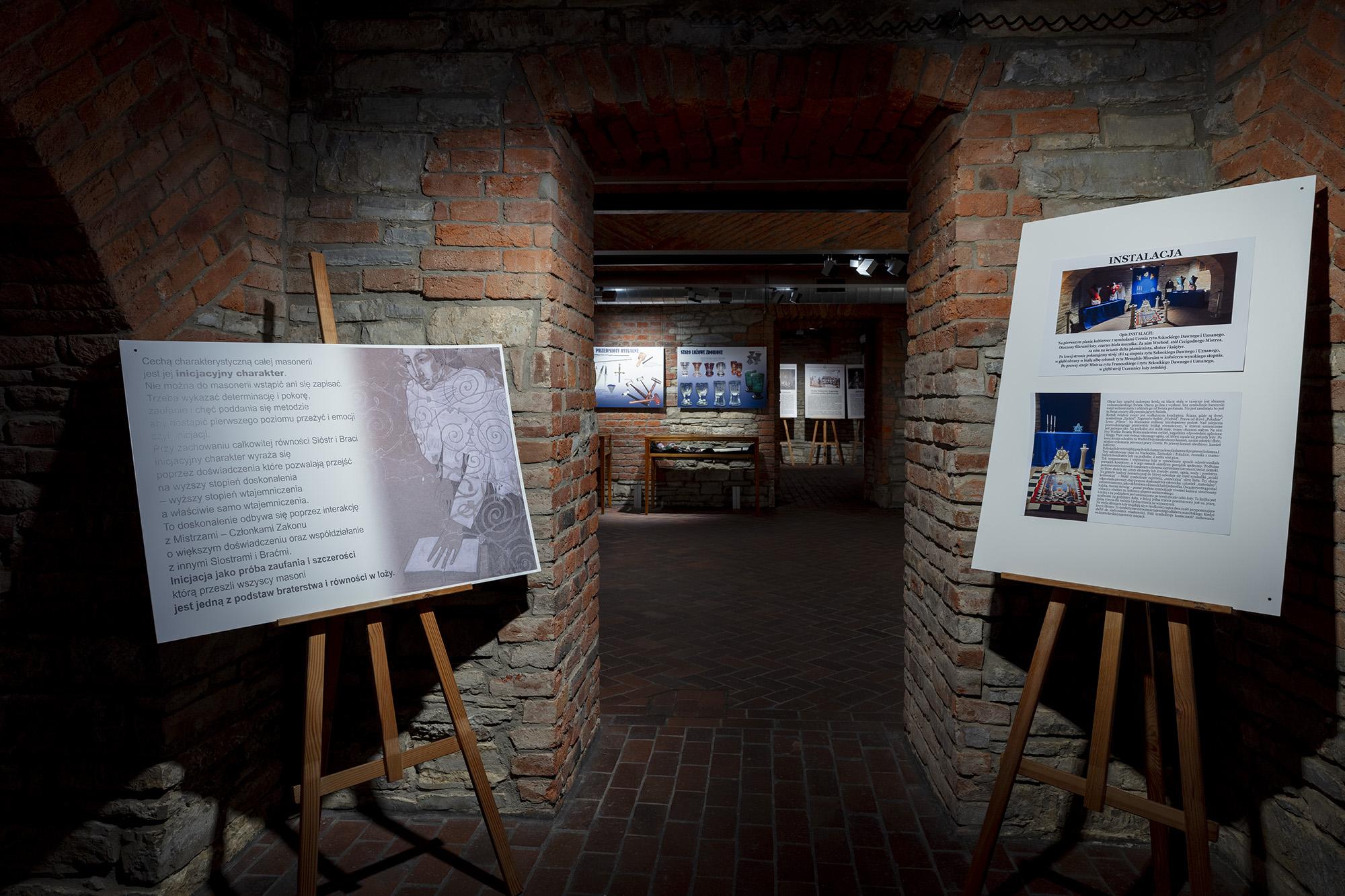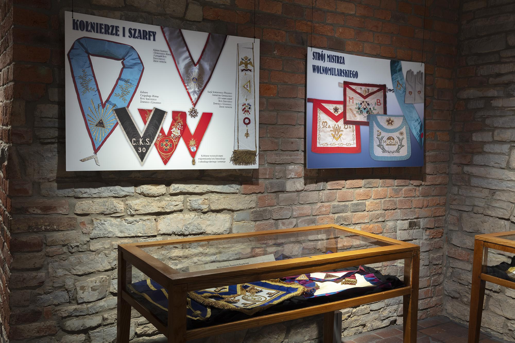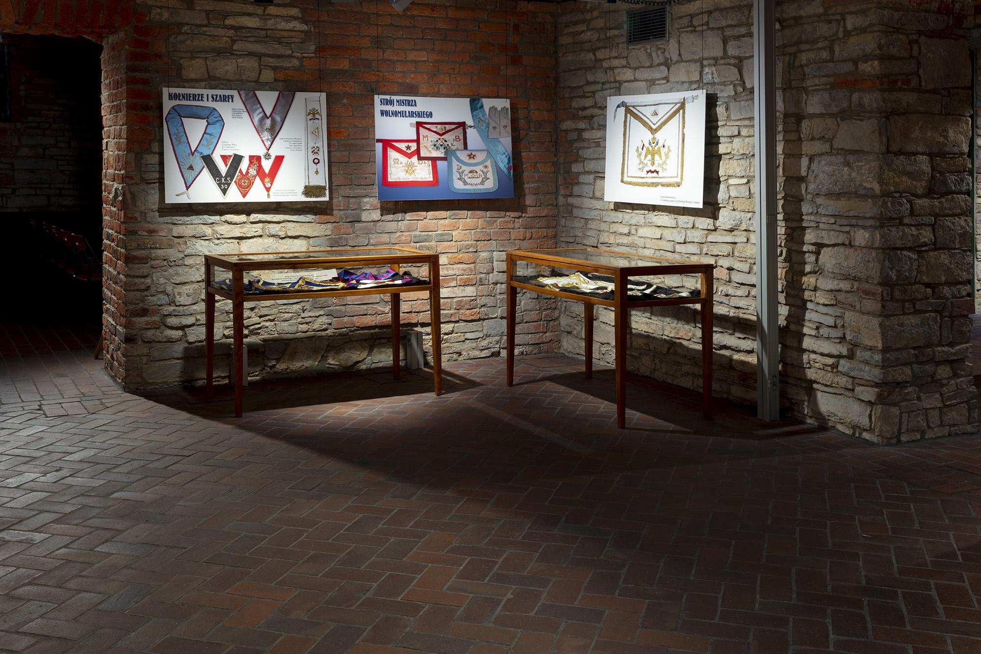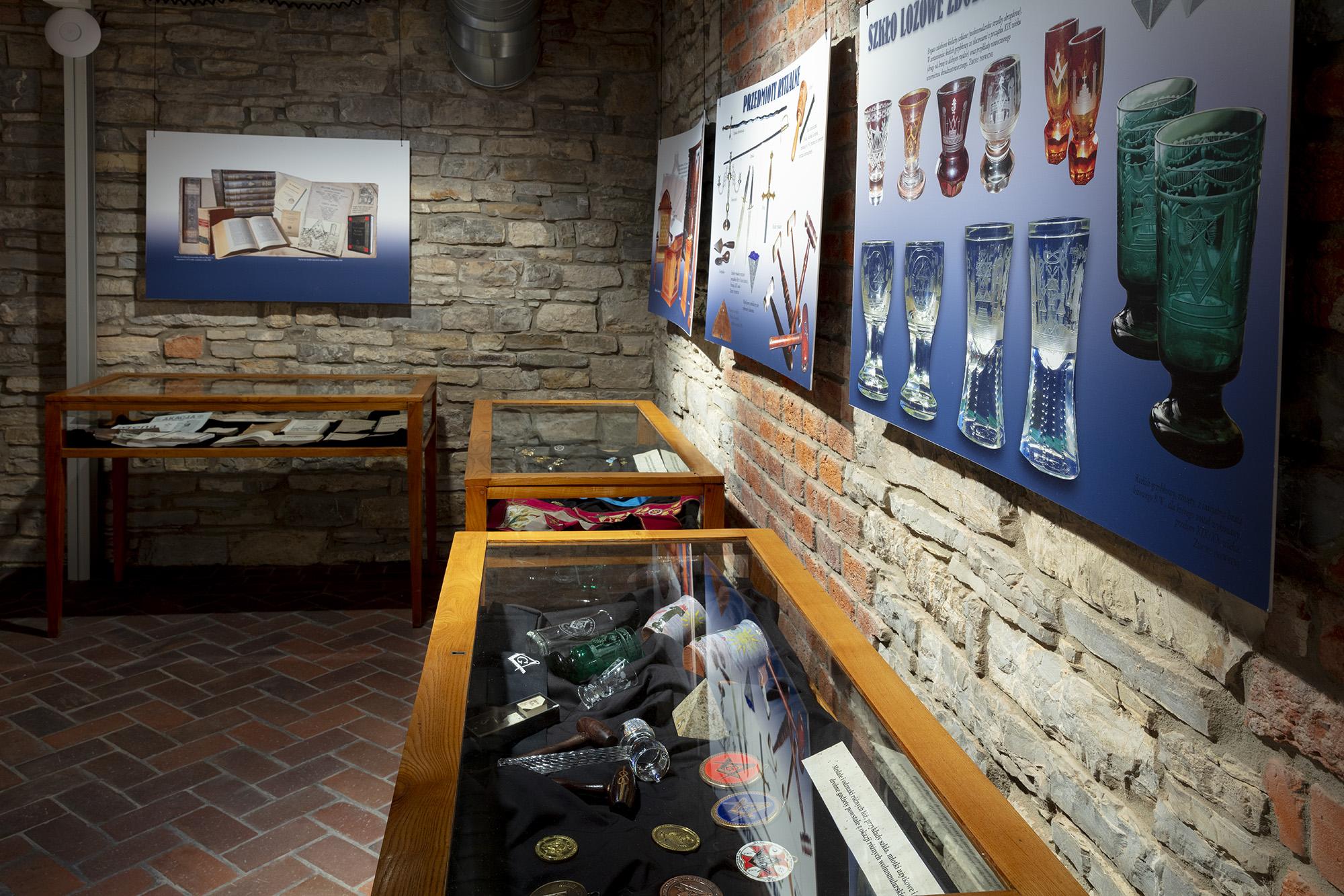 Zawiera plansze z informacjami historycznymi, poczet najważniejszych wolnomularzy polskich, informacje o symbolice i zasadach ruchu. Ilustracją są inscenizacje przybliżające zwiedzającym rytualne życie wolnomularzy. W gablotach pokazana jest polskojęzyczna literatura z XIX i pierwszej połowy XX wieku, przedmioty związane z subkulturą wolnomularstwa.