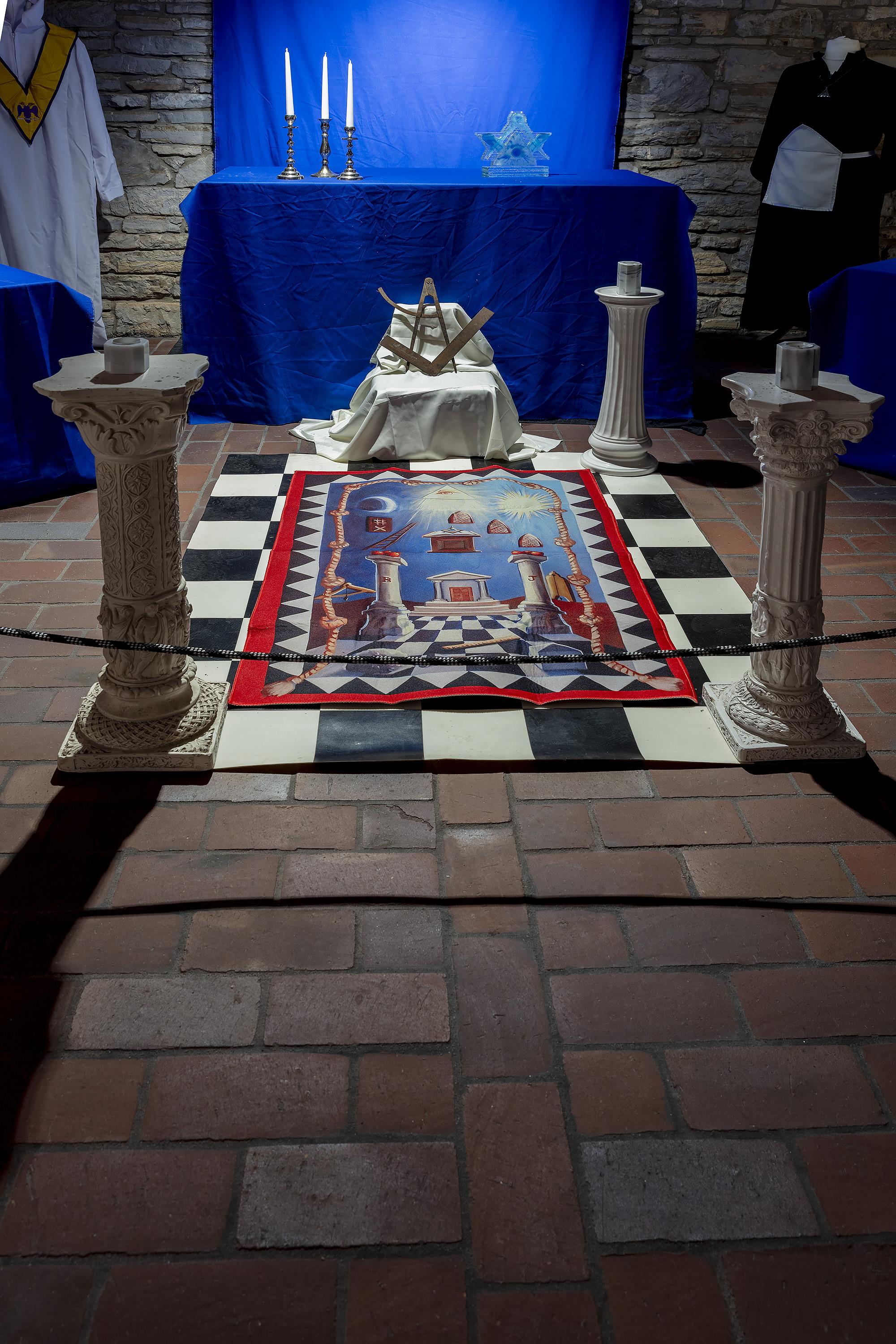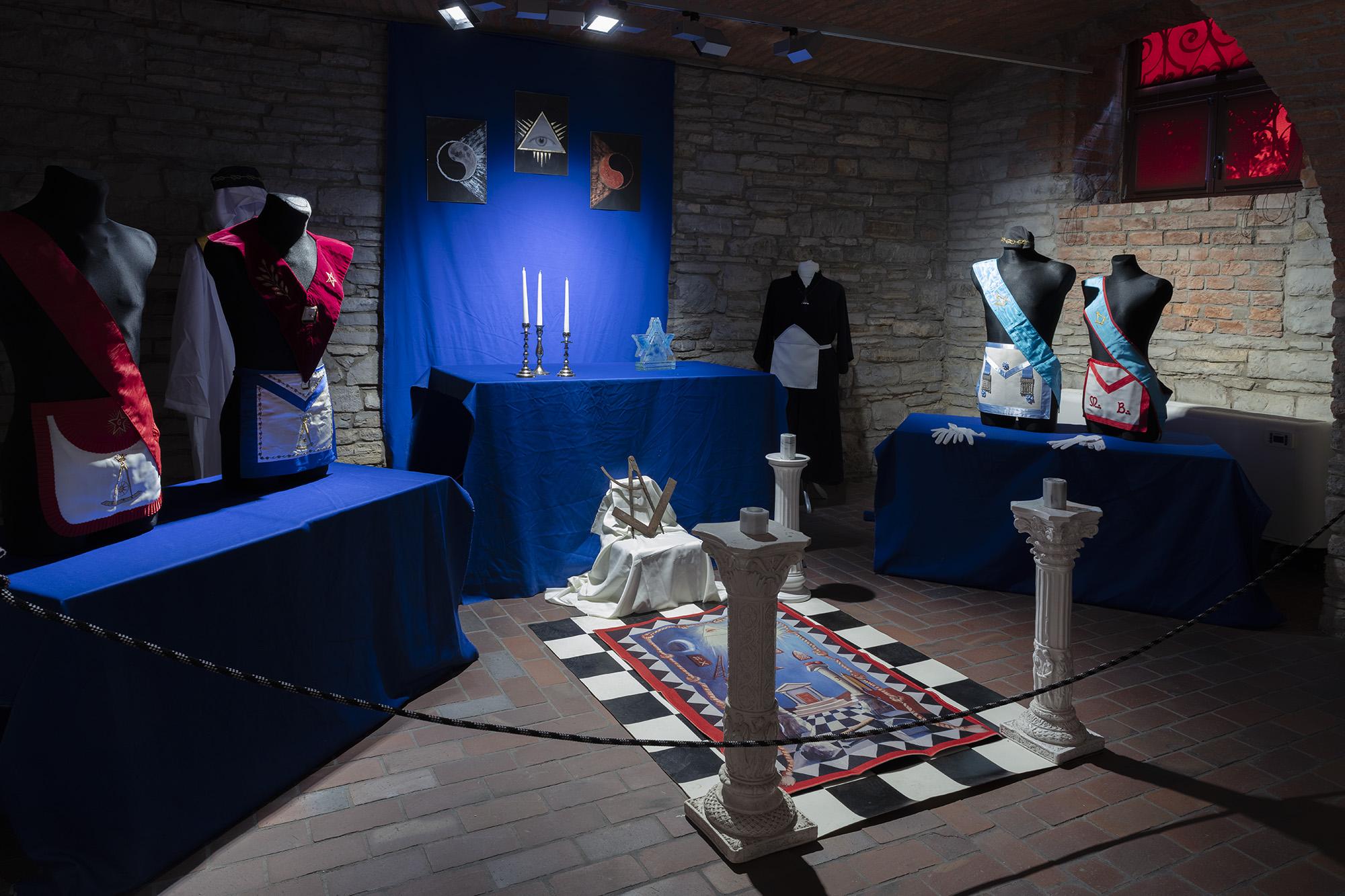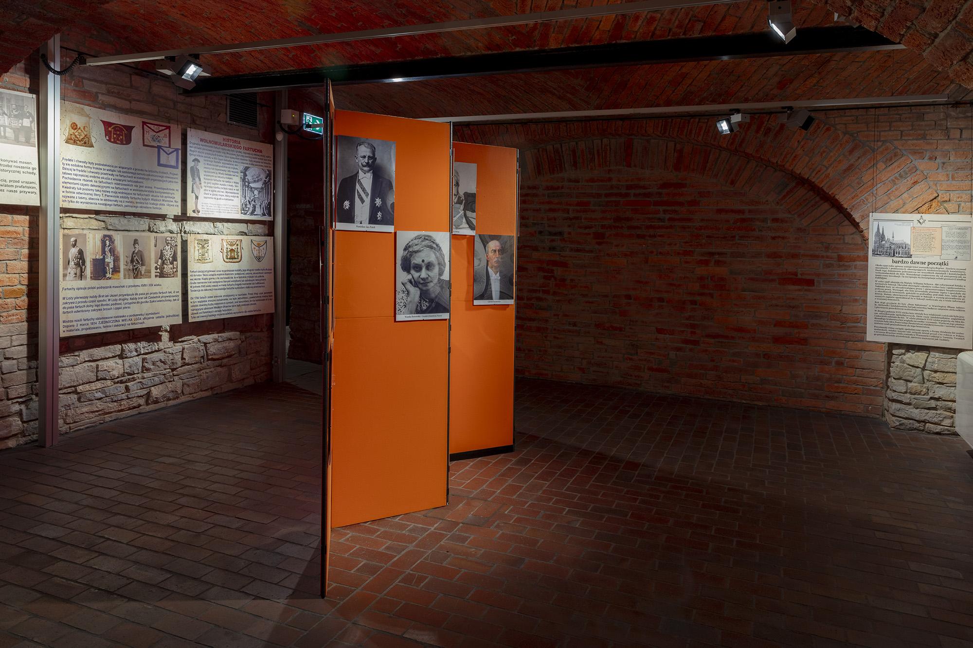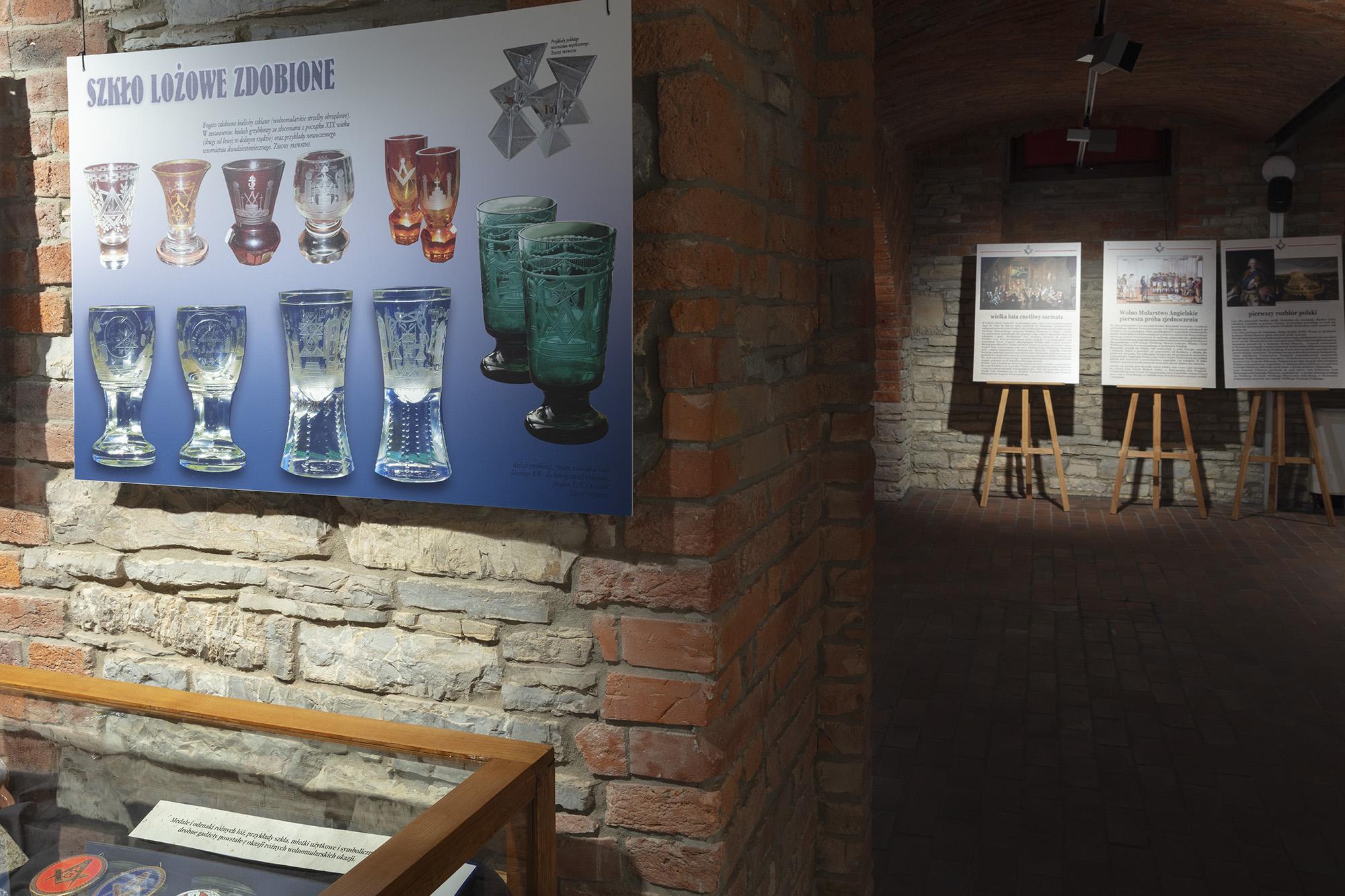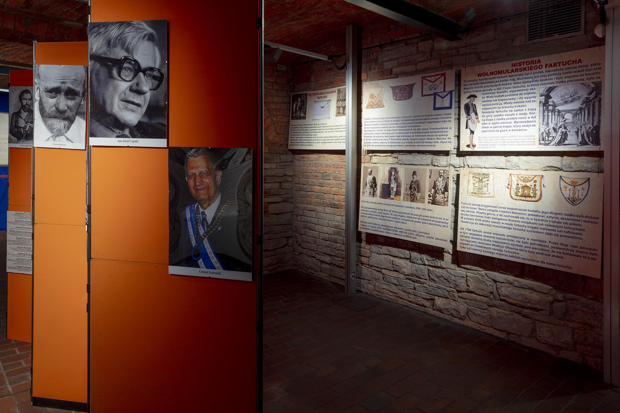 Zawiera plansze z informacjami historycznymi, poczet najważniejszych wolnomularzy polskich, informacje o symbolice i zasadach ruchu. Ilustracją są inscenizacje przybliżające zwiedzającym rytualne życie wolnomularzy. W gablotach pokazana jest polskojęzyczna literatura z XIX i pierwszej połowy XX wieku, przedmioty związane z subkulturą wolnomularstwa.