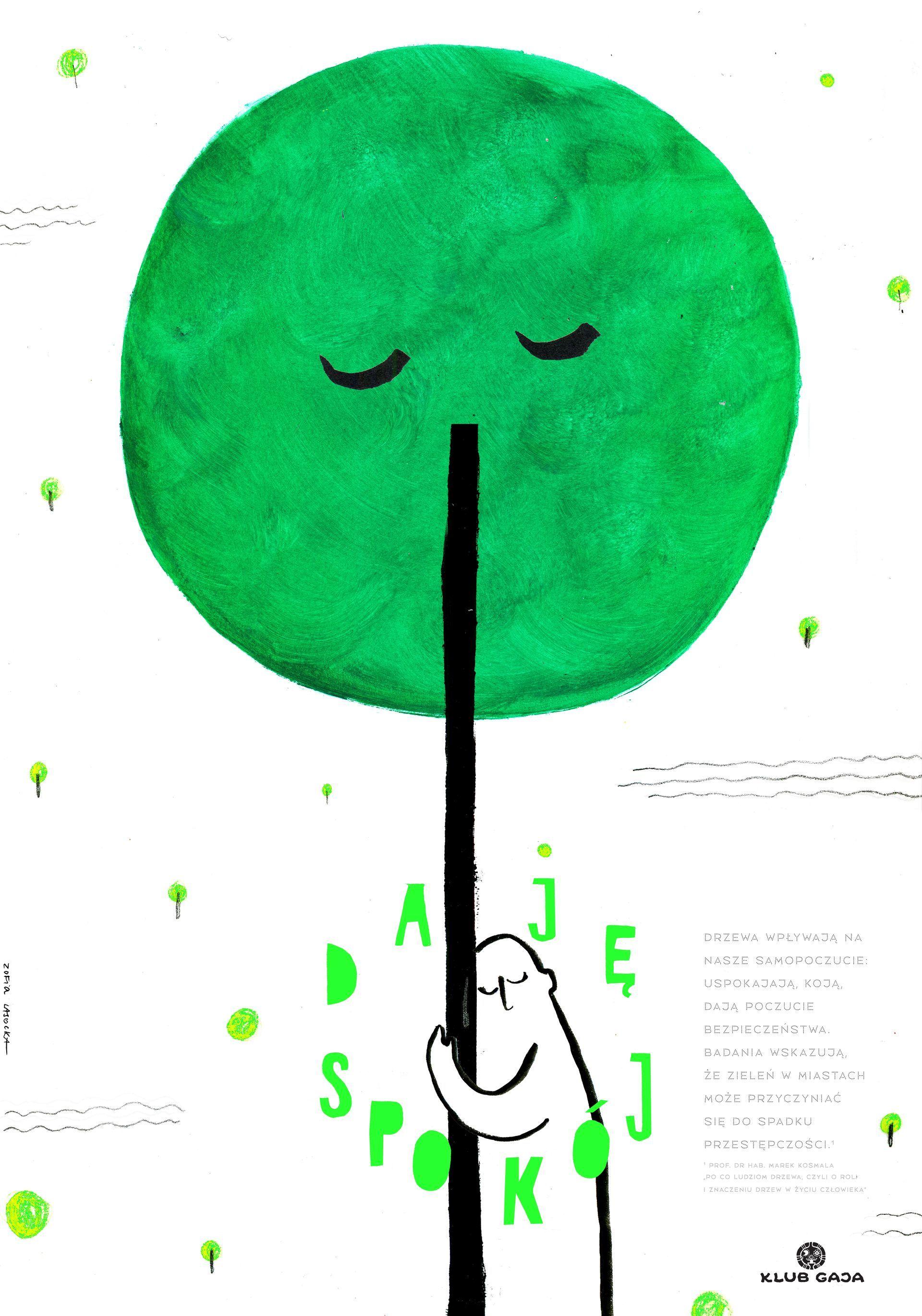 Zofia Lasocka - absolwentka Wydziału Grafiki na warszawskiej Akademii Sztuk Pięknych. W 2018 roku obroniła z wyróżnieniem dyplom z dwóch specjalizacji: grafiki wydawniczej i ilustracji. Dyplomową serię plakatów pt. „Drzewo – przyjaciel” przygotowała dla Klubu Gaja. Każdy plakat ilustruje jedną z wielu różnorodnych korzyści płynących z obecności drzew w ekosystemie, mówi o tym, jak wiele drzewa dają człowiekowi. Wśród tytułów-haseł na plakatach widnieją napisy m.in.: „Ptasi raj”, „Pogromca gorąca”, „Miasto czyszczę”, „Hałas trzymam na dystans”, „Daję spokój”, „Las zabaw”.